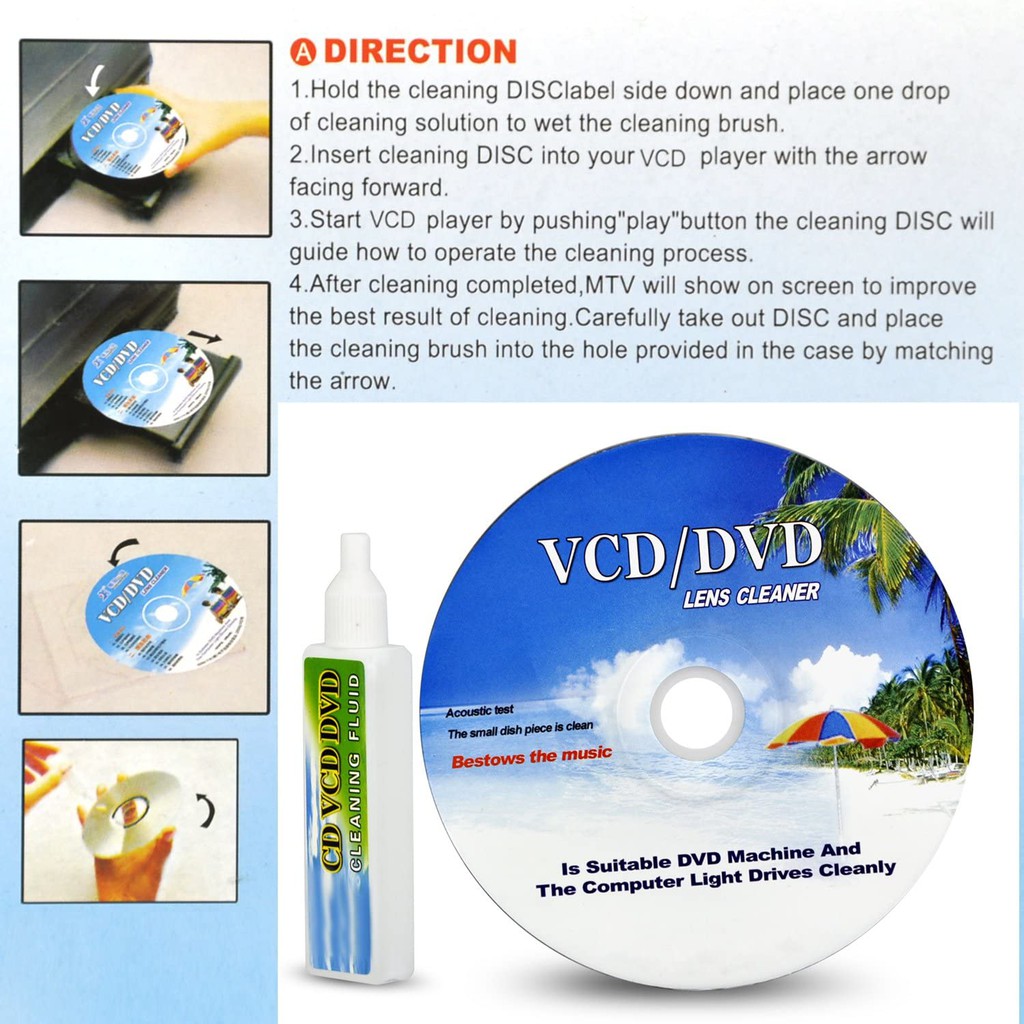 DVD VCD CD-Rom Lens Cleaner Rom Player Cleaning Restore Kit Wet & Dry Compatible +Cleaning fluid