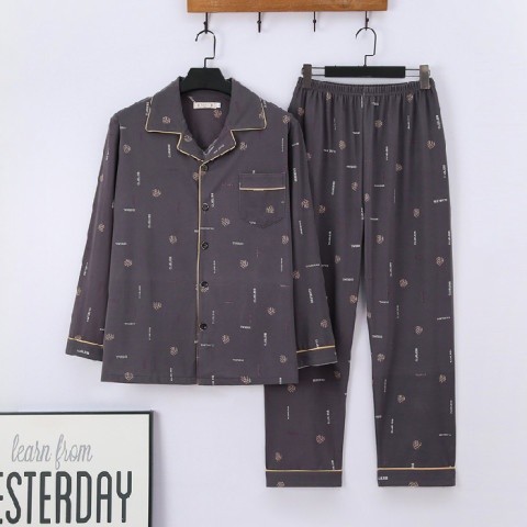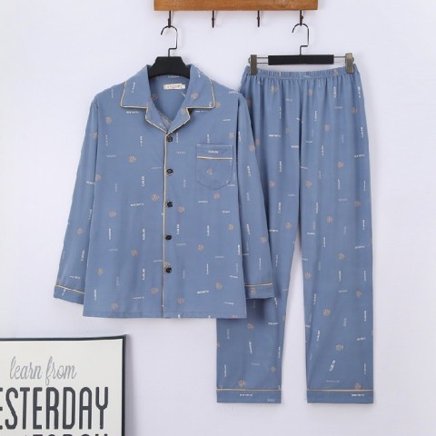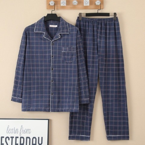 Dad Cotton Sleepwear Men's Long Sleeve Cardigan Pajamas Set for Men Husband Father's Day Gift