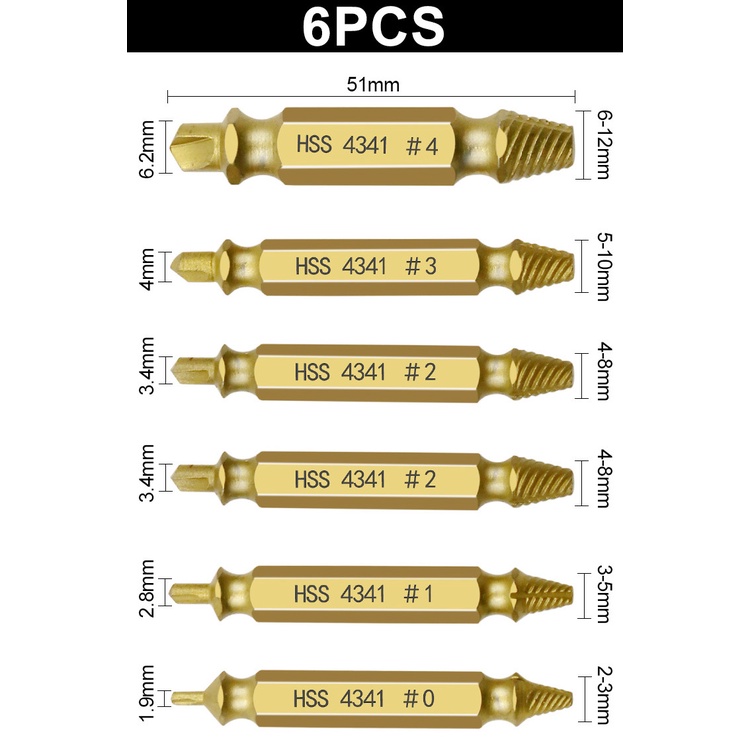 Damaged Screw Extractor Drill Bit Screw Extractor Bolt Remover Tools Screw Remover SetRemove Damage Screw 6 Pcs