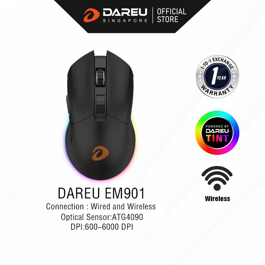 Dareu EM901 Wireless/Wired Gaming Mouse Black/Pink 6000 DPI Dareu TINT RGB 4G Nano Receiver