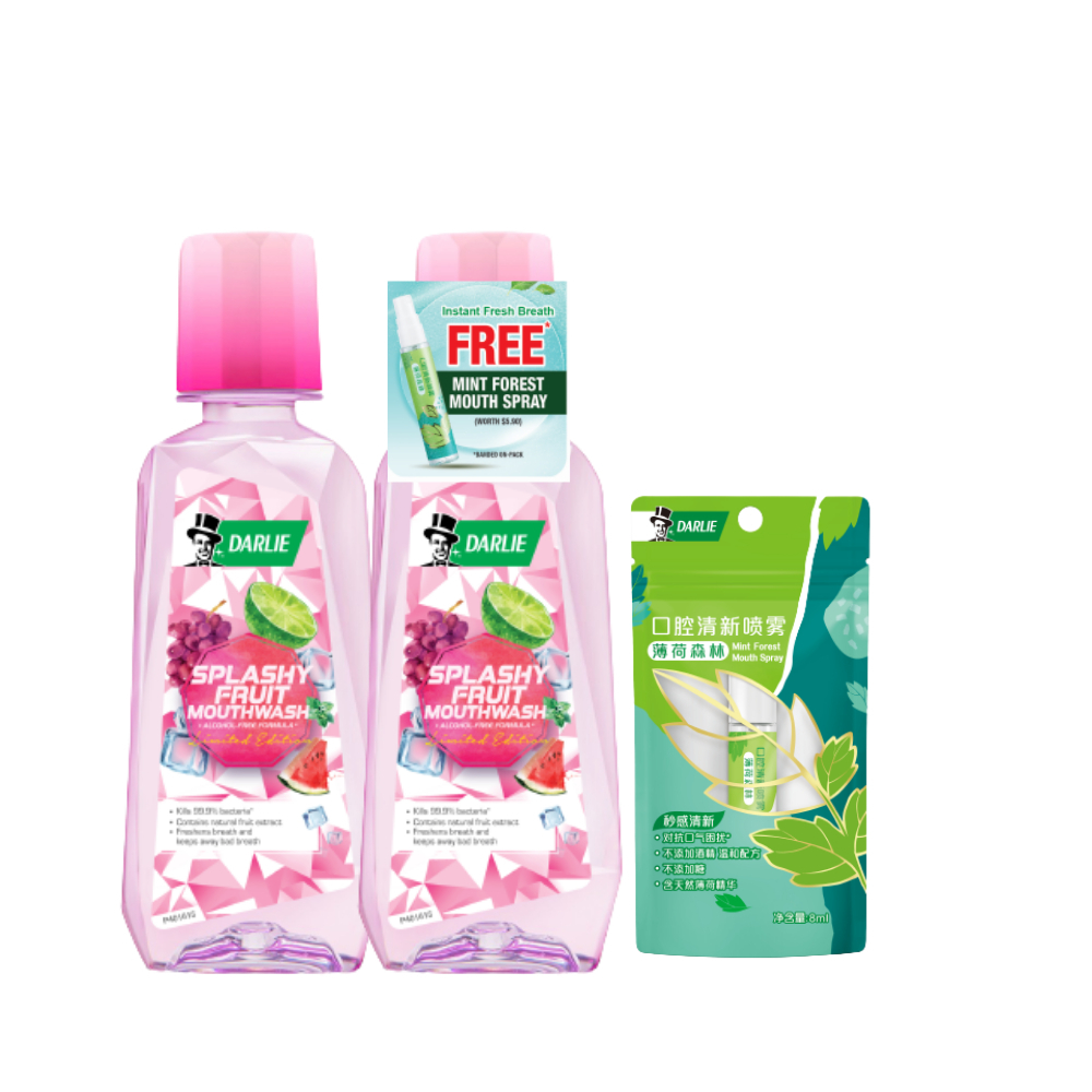 Darlie Double Action Toothpaste Original Strong Mint Flavor 2's 250g+100g Bundle Pack Mouthwash Splashy Fruit 2s 500ml