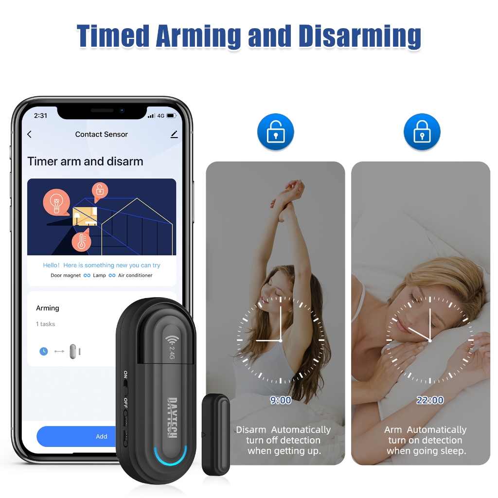 Daytech Door Alarm Window Sensor for Home Security Kids Safety, Door Open Alarm Contact 120 dB Alert with 5 Feature Modes Burglar Anti-Theft for Child Safety/Home/Office/DA08