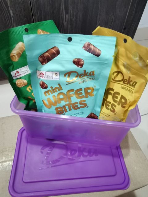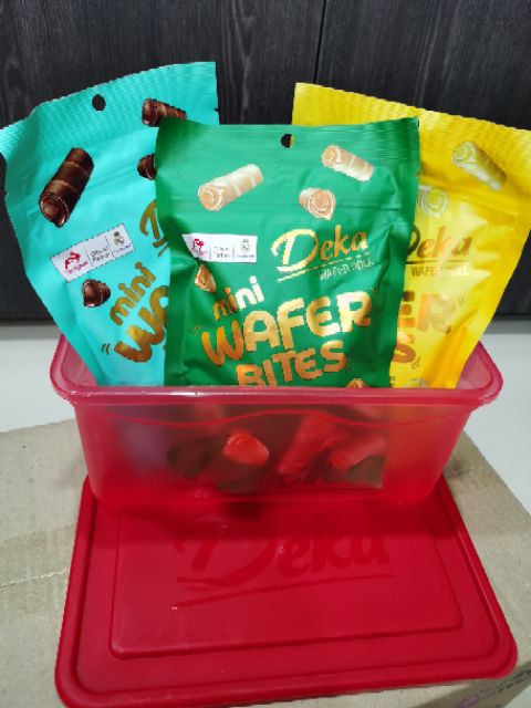 Deka Mini Wafer Bites Assorted/ Wafer Roll 80g/ Wafer Chocolate80g/ Wafer Peanut80g/ Wafer Durian80g/ FOC Container