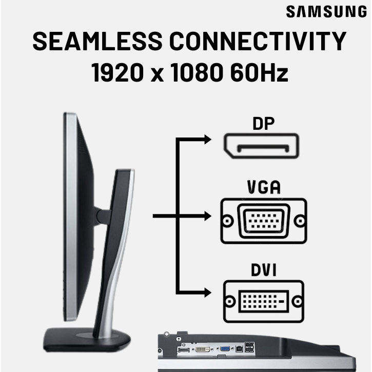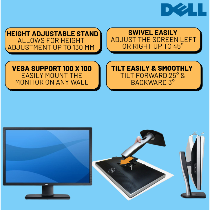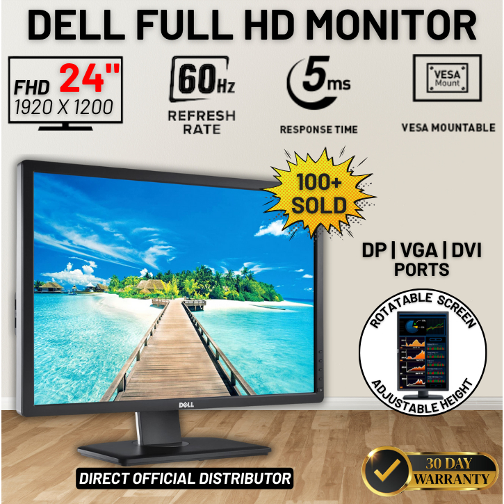 Dell 24 inch monitor FHD monitor 1920x1080 LED PC monitor DP VGA DVI port U24212 swivel stand pc monitor REFRUBISHED SET
