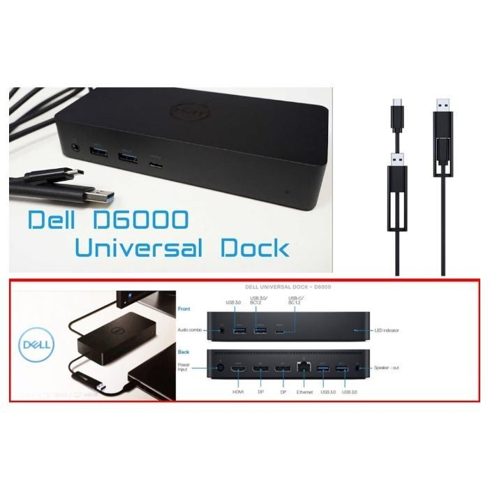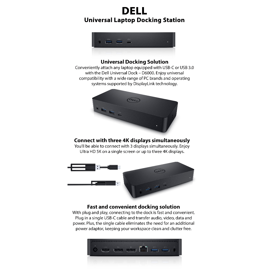 Dell Universal Dock - D6000 - Docking station (USB-C / USB 3.0), connect up to three 4K displays and charge(Refurbished)