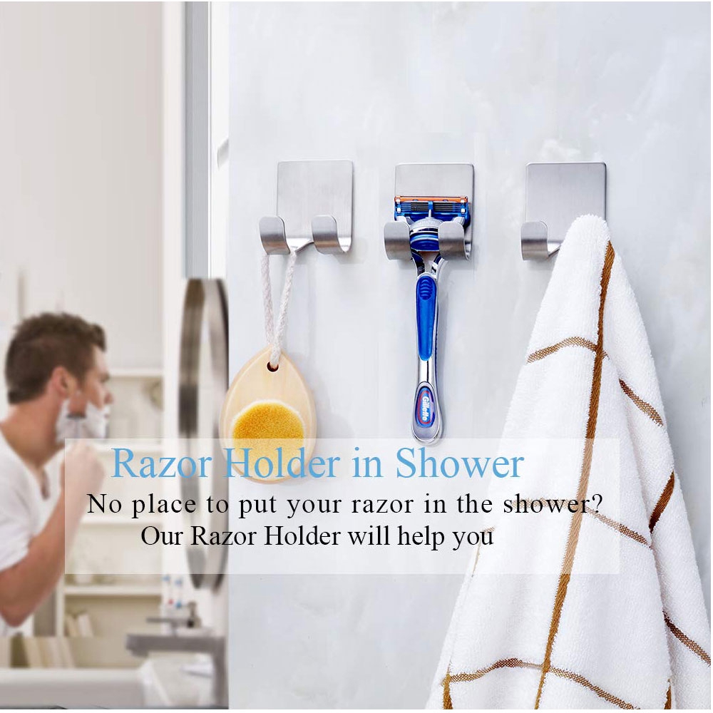 Deluxe Razor Holder /Adhesive Stainless Steel Heavy Duty Storage Hook /Razor Bathroom Kitchen Organizer Hook /for Shower Shaver Holder Hook Hanger
