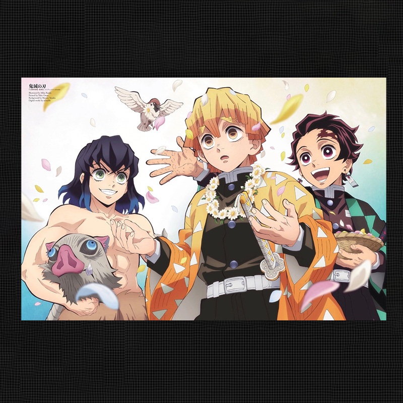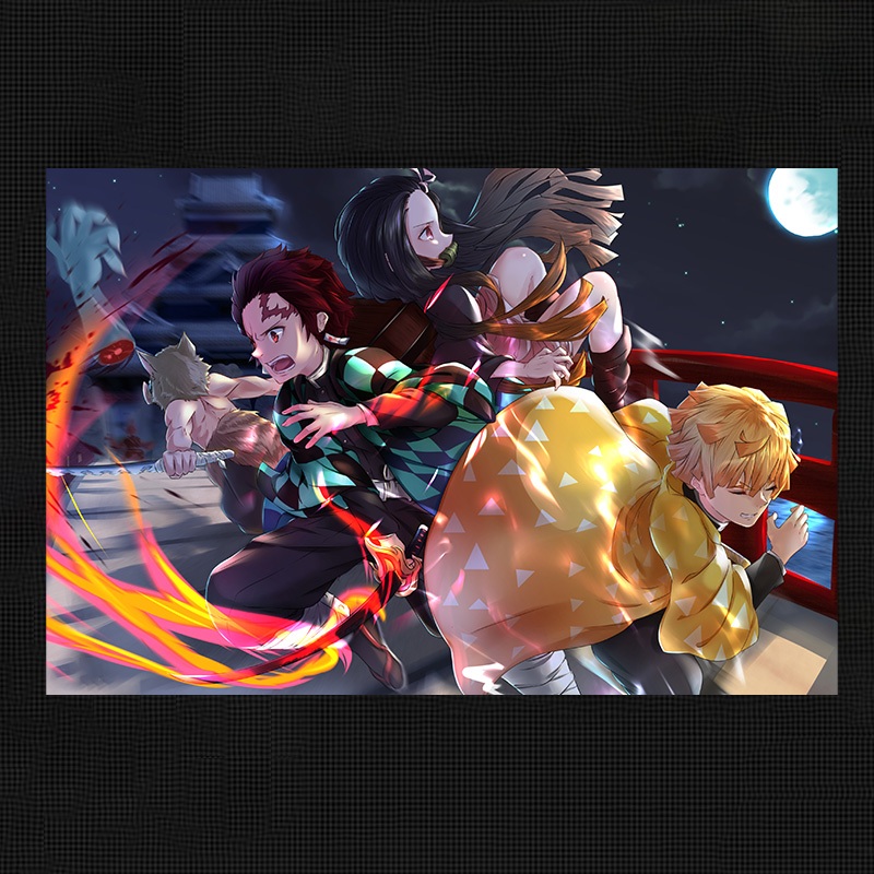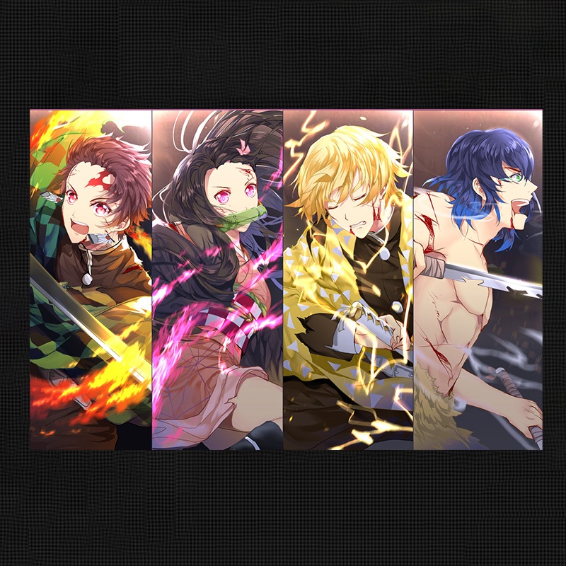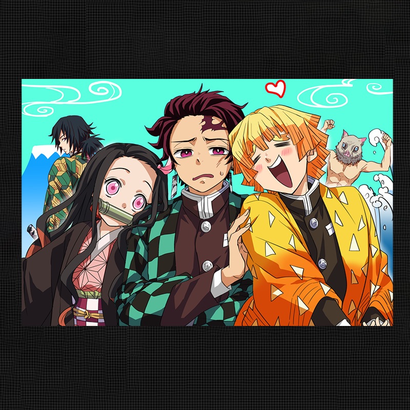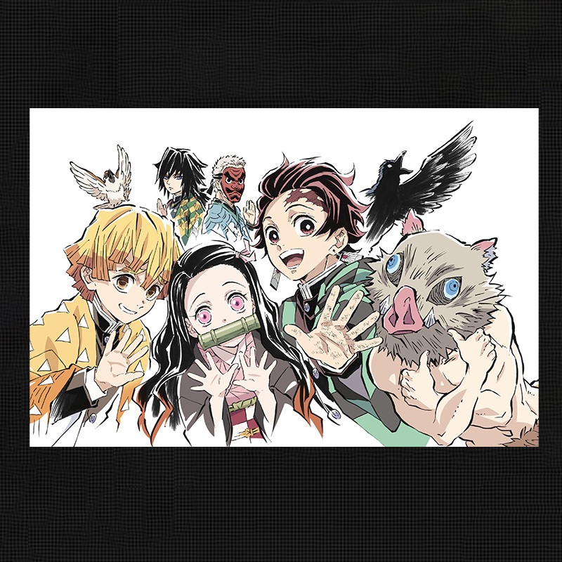 Demon Slayer Poster Japanese Anime Poster Full Character Poster Tanjirou Nezuko My Wife Zenitsu Inosuke Bedroom Dormitory Wall Sticker HD A3 Laminated Adhesive Poster