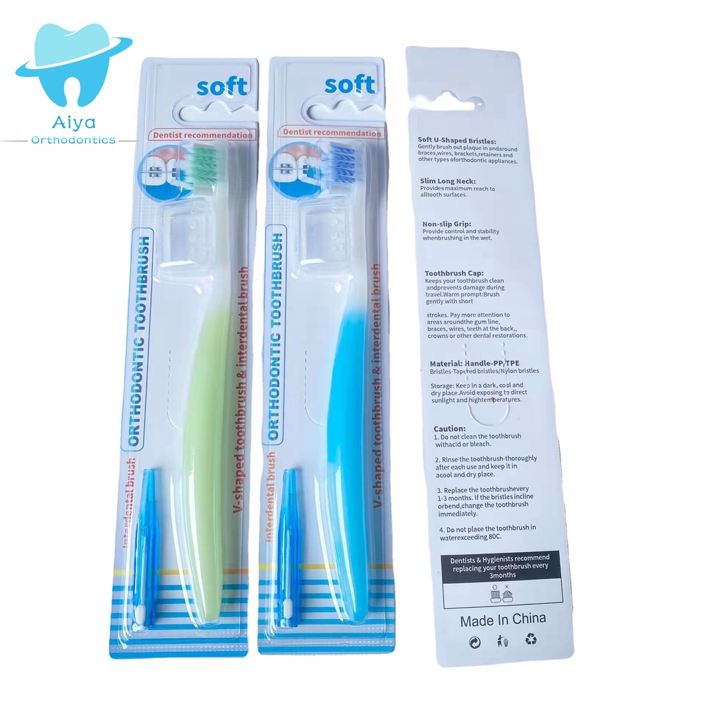 Dentist recommendation Orthodontic V-shaped toothbrush&interdental brush