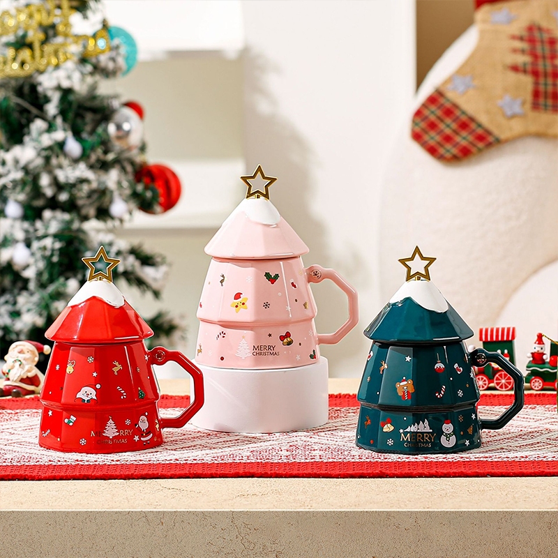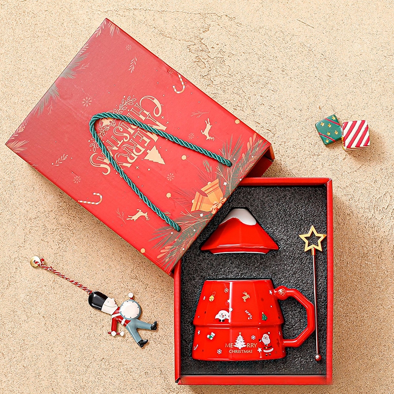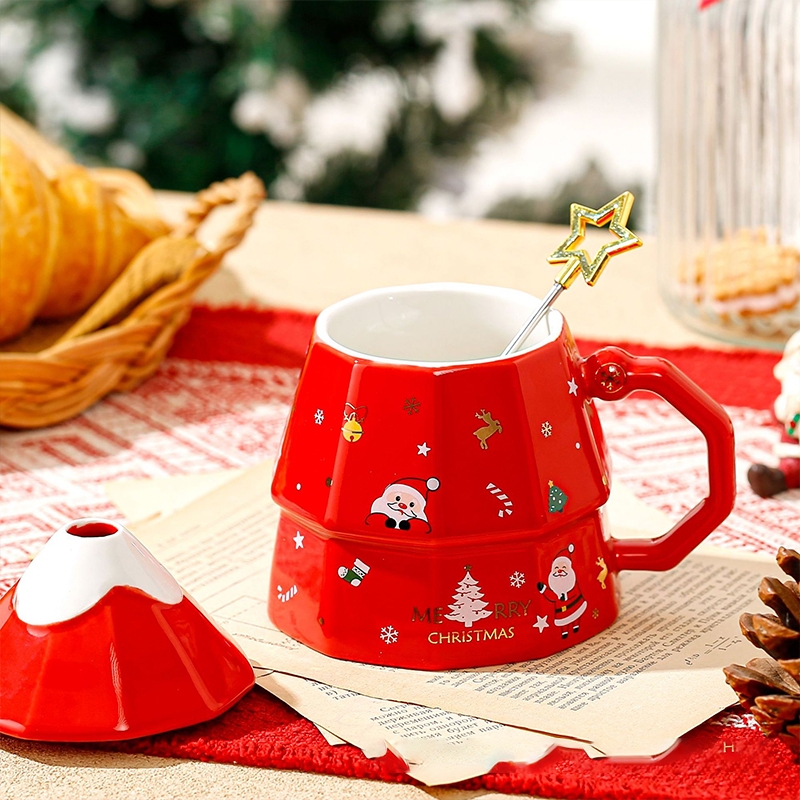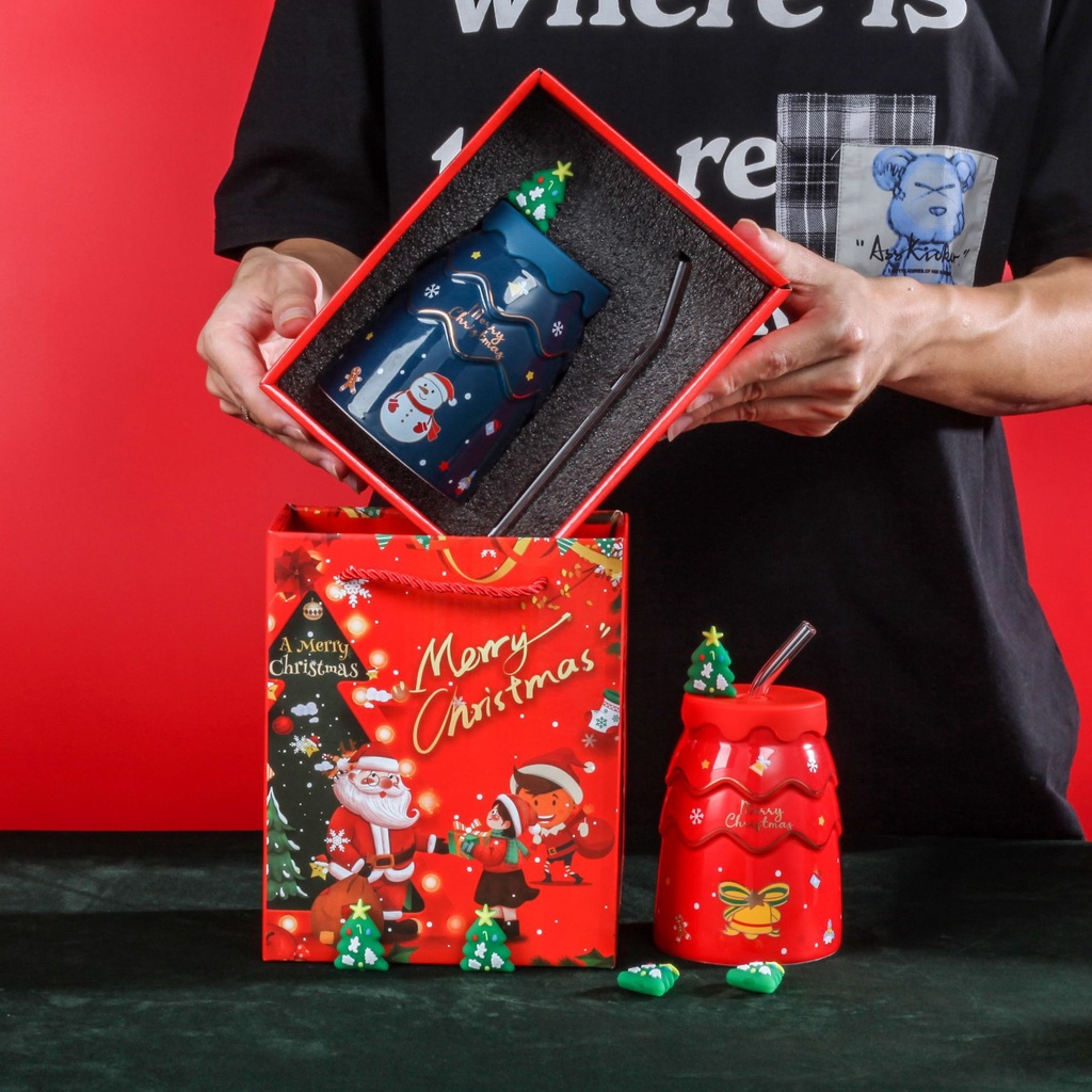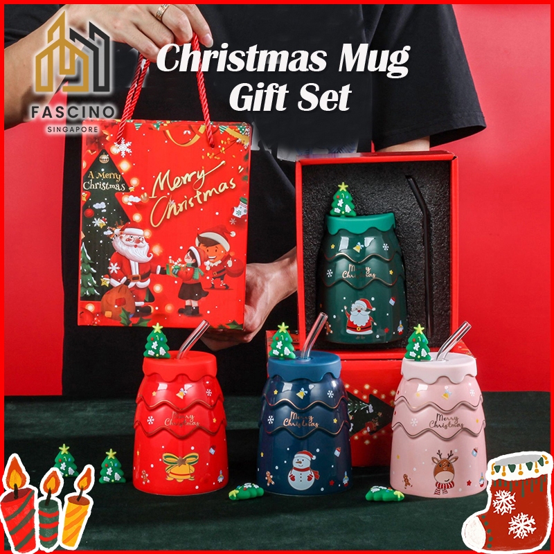 【SG STOCK】🎄Christmas Mug Gift Set Ceramic Coffee Mugs Cup with Straw Lid Christmas Gifts with Gift Box 2025 NEW