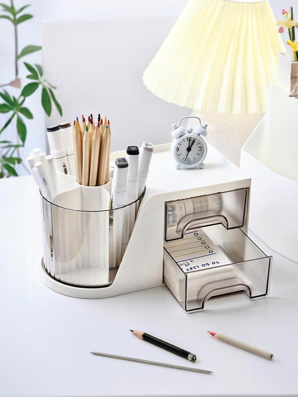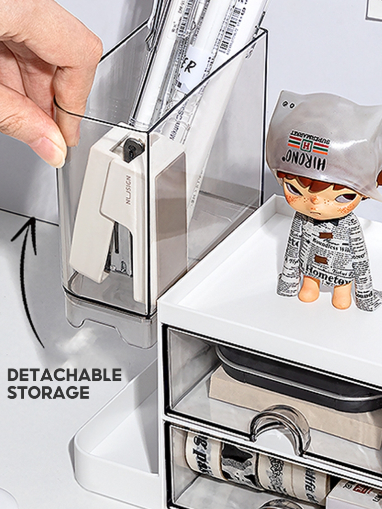 Clear Desk Organizer Box Stackable Stationery Skincare Box With Compartments Storage Box