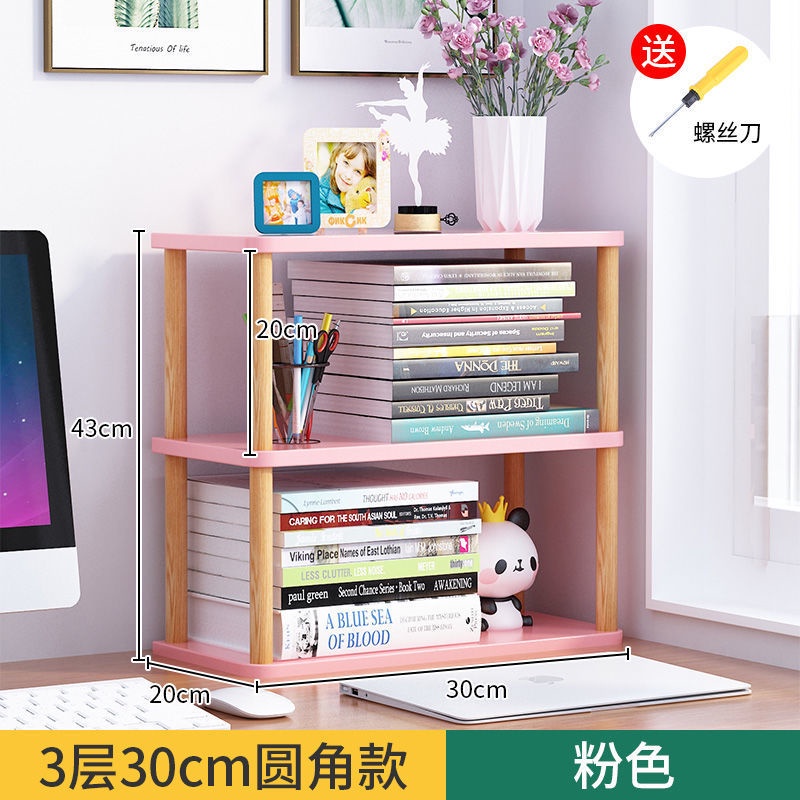 Desk Storage Laptop Stand Contracted Creative Shelf Rack Simple Table Small Bookshelf Multi-layer Storage Office Solid Wood Pole Partition Multi-functional