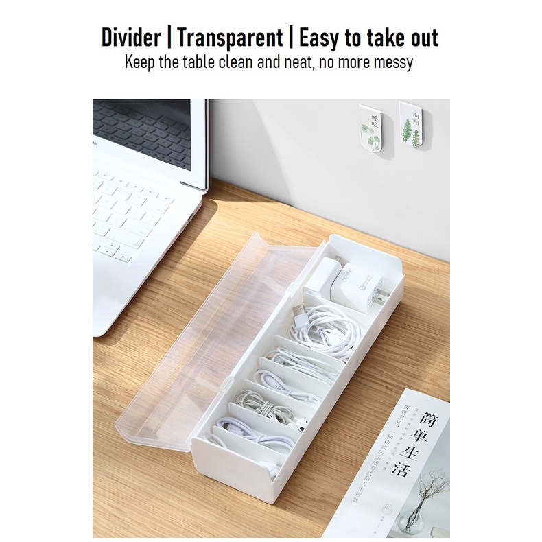 Desktop Cable Storage Box Organizer with Lid Wire Earpiece Transparent Storage Cable Box Neat Tidy Table