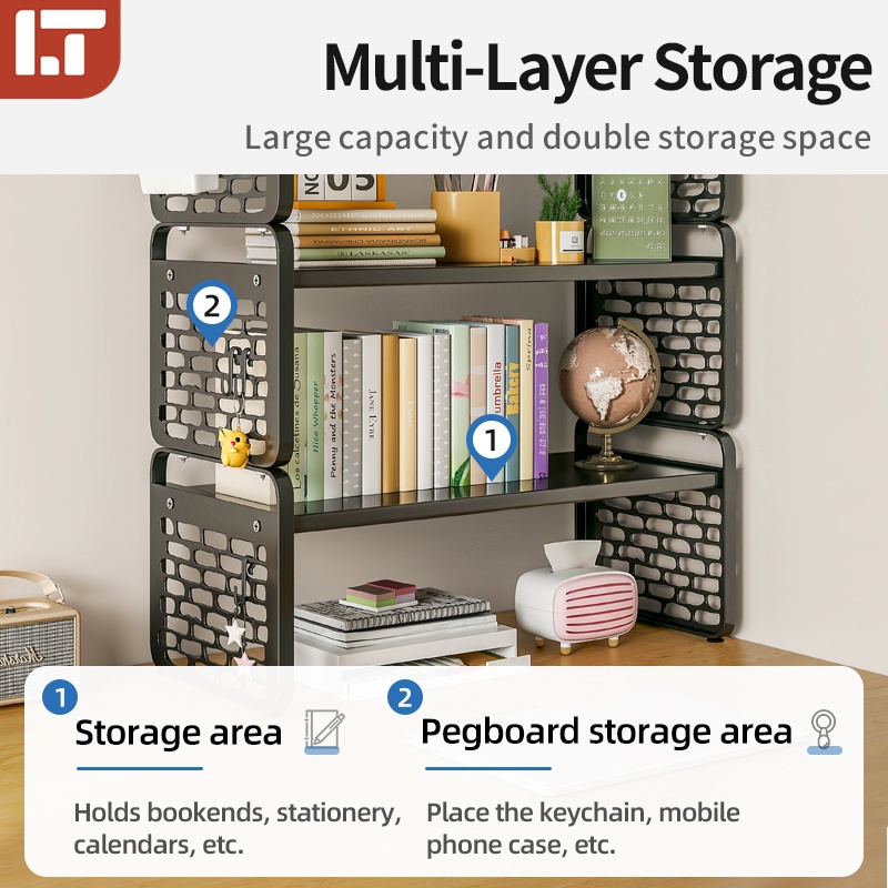 Desktop Rack with Pegboard Study Table Organizer 3 Tier Bookshelf Desktop Organizer Office Multipurpose Rack Office Table Organizer Table Rack