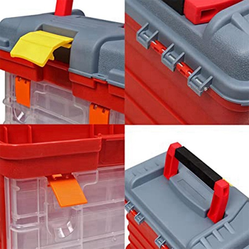 Detachable Toolbox Multifunctional Storage Box with 4 Layers and 72 Compartments Can Place Screws, Nuts and Wrenches Capacity Stool Carrying Handle