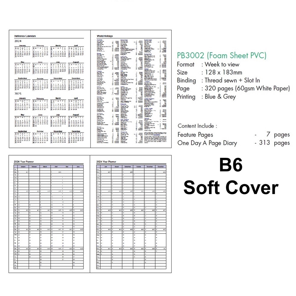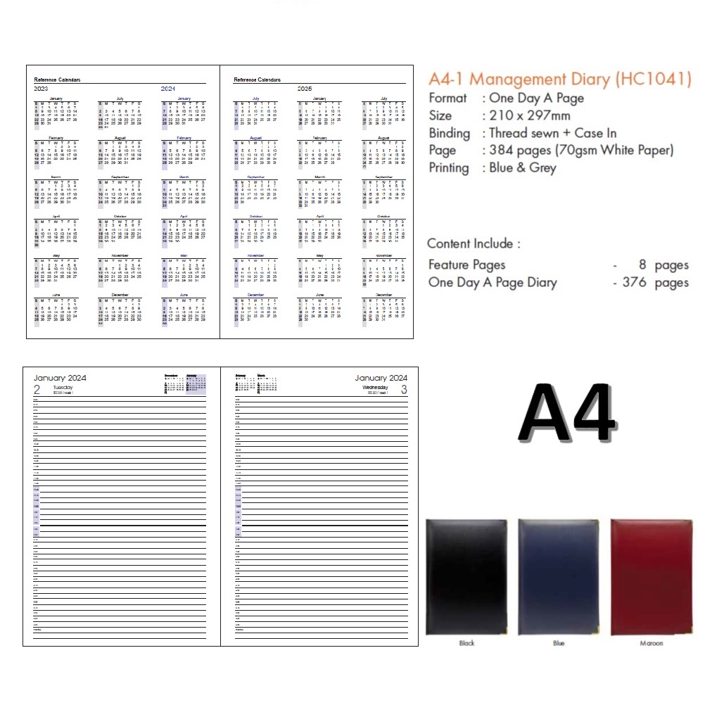 Diary 2024 A4/A5 Size Leatherette Hard/Soft Cover Management Diary Buku Diari 2024