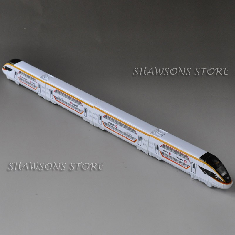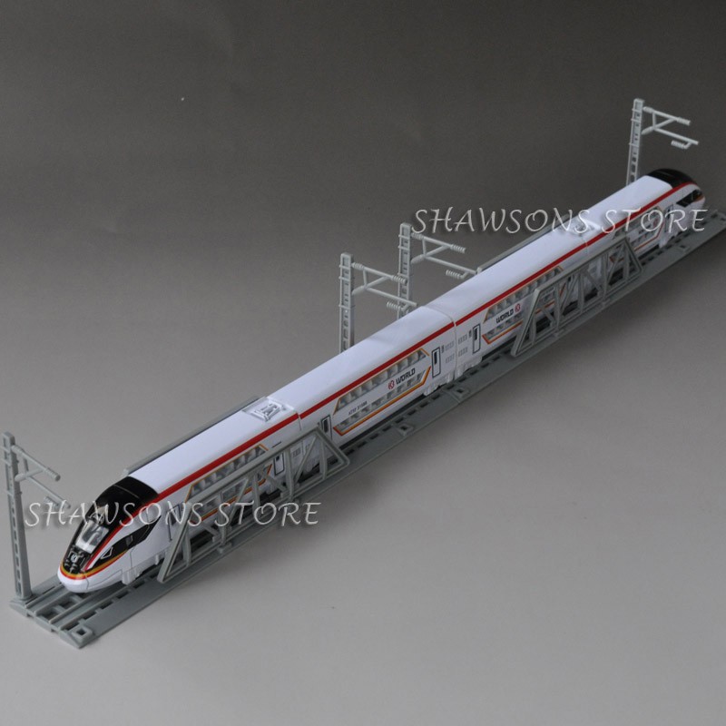 Diecast Metal Double Decker CRH High Speed Train Railway Model Pull Back Toy With Tracks For Child Gifts