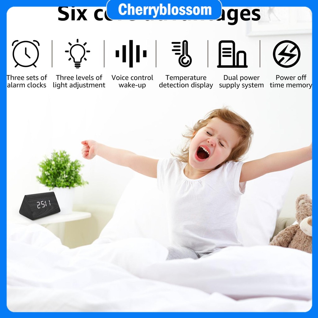Digital Alarm Clocks with LED Display Battery and USB Powered Triangle Alarm Clocks with Acoustic Sensor Electric Wooden Clock SHOPCYC8426