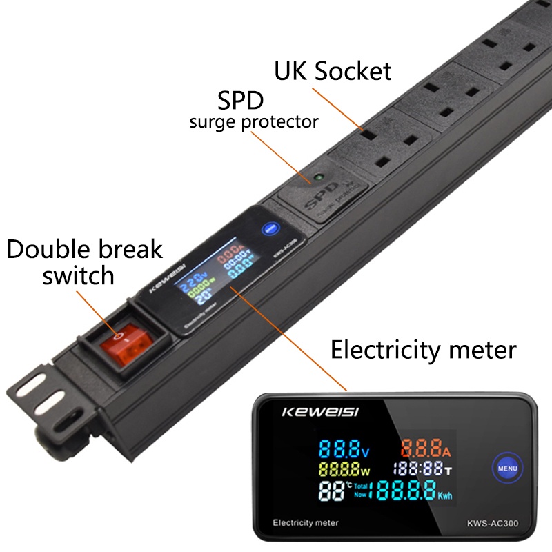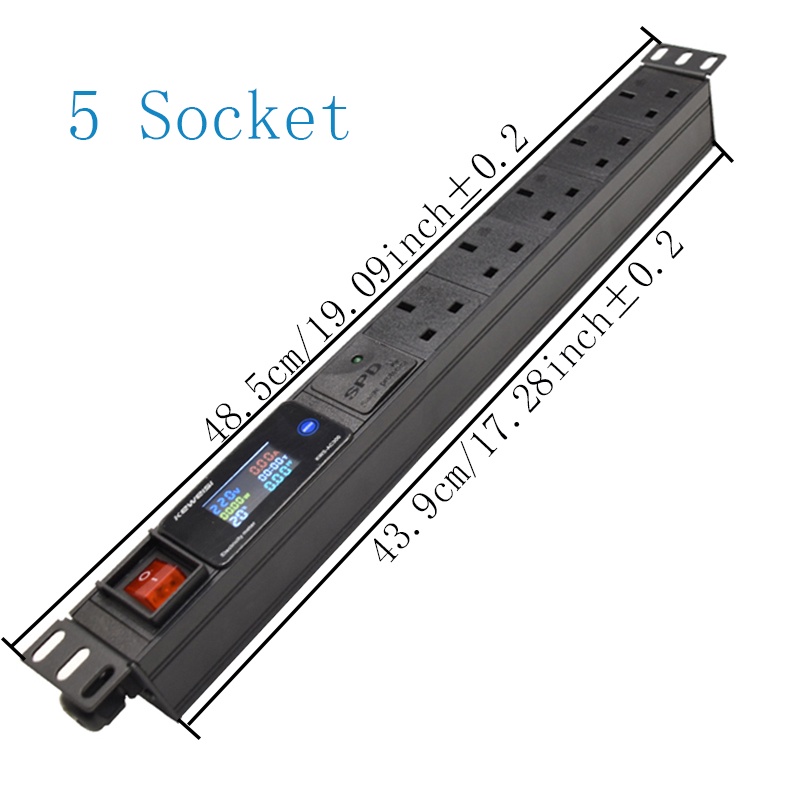Digital Display Meter PDU Power Distribution Unit 5 Ways UK 3 pin Power Socket Extension Surge protection 2/3/5Meter Cord