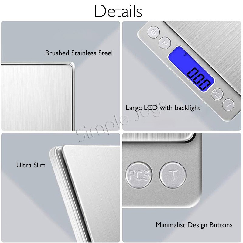 Digital Kitchen Weighing Scale for Food Baking Weight Up to 0.01g Stainless Steel Backlit Display