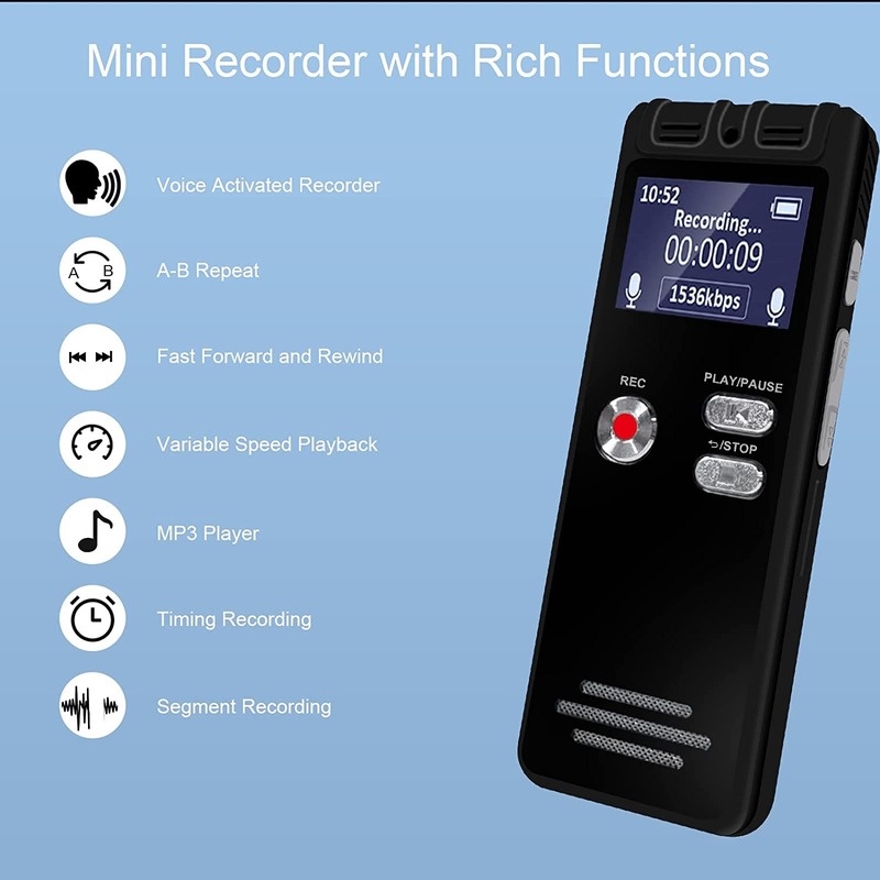 Digital Voice Recorder Voice Activated Recording Device with Playback Mini audio recorder tape recorderPassword