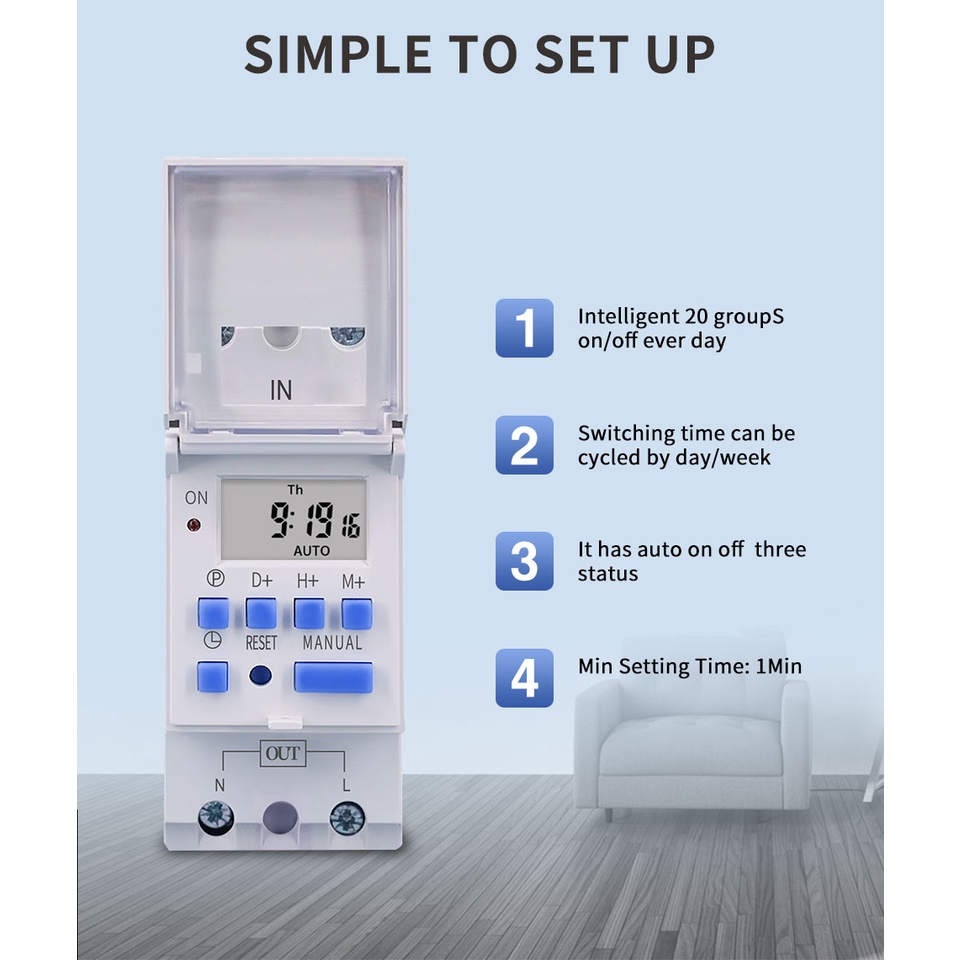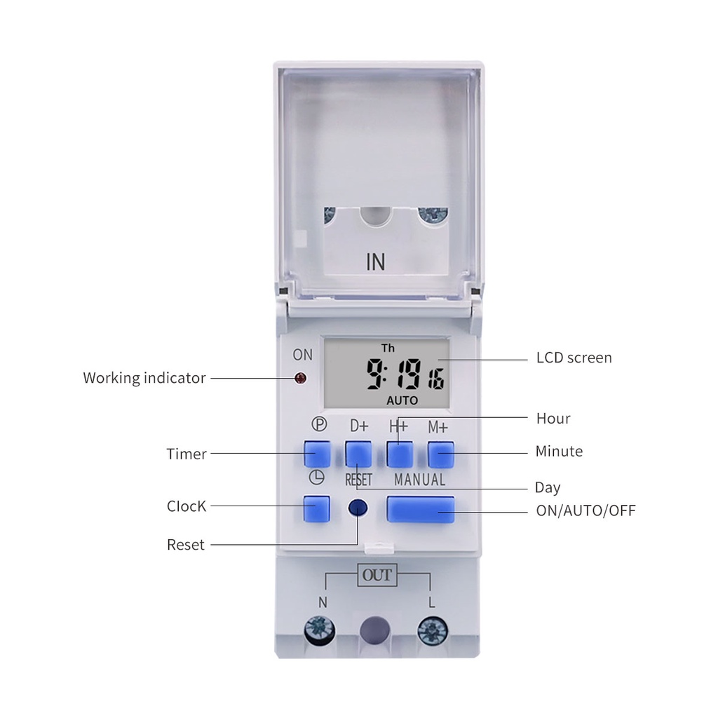 Din Rail 2 wire Weekly 7 Days Programmable Digital TIME SWITCH Relay Timer Control AC 220V 230V 12V 24V 48V 16A 30A