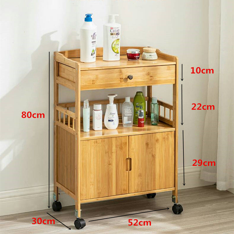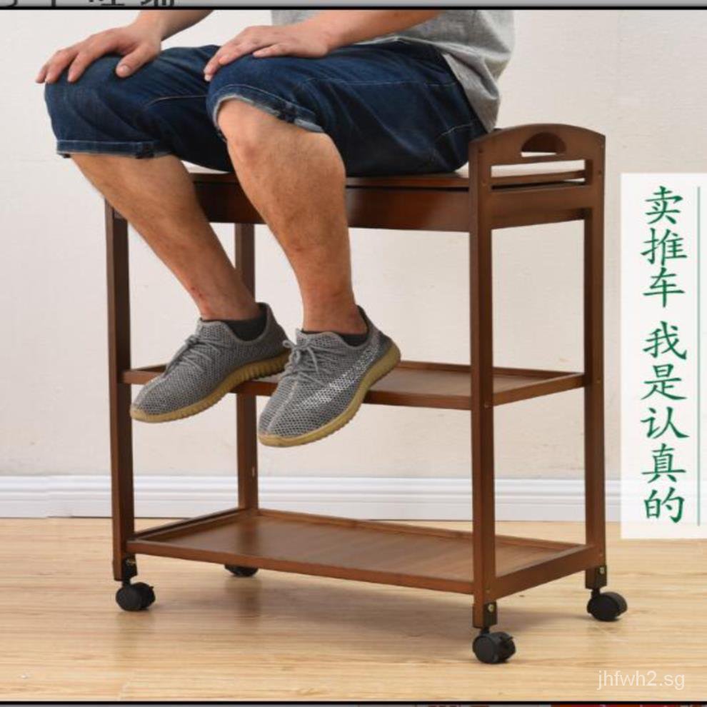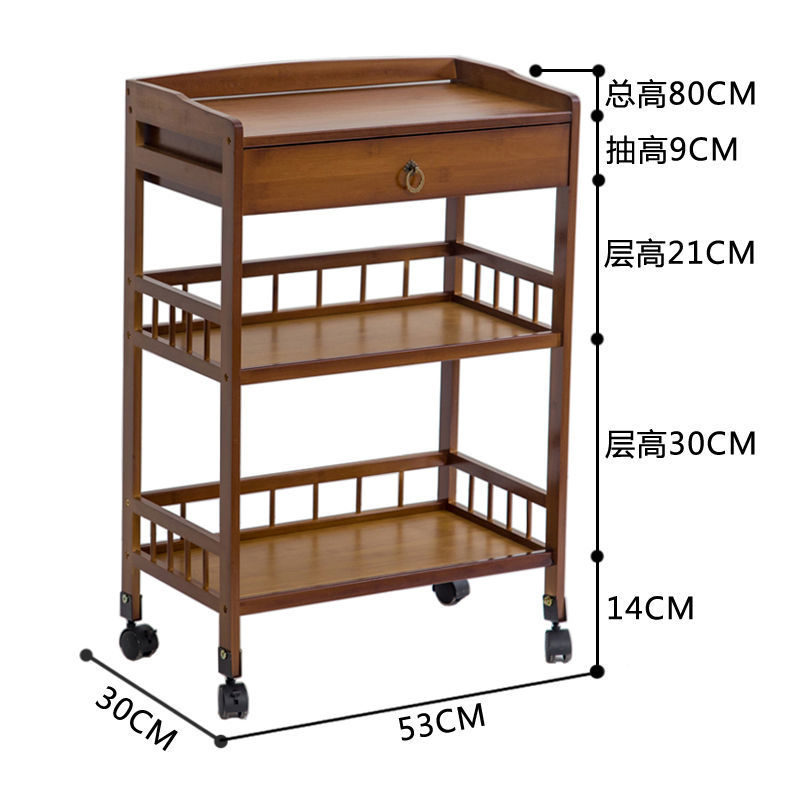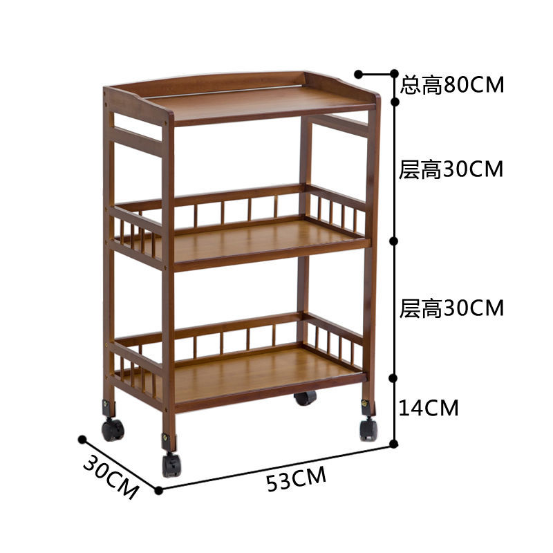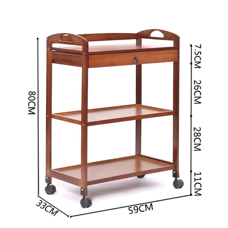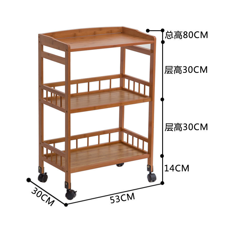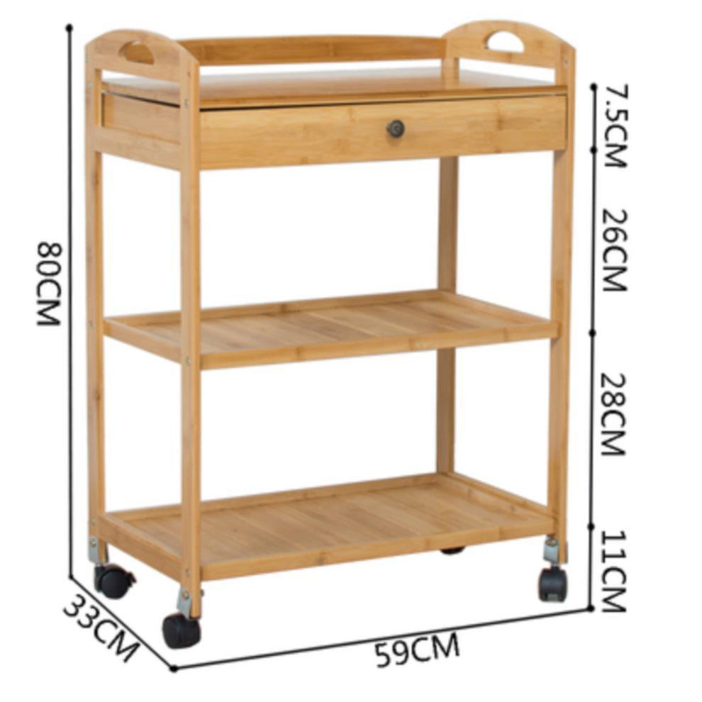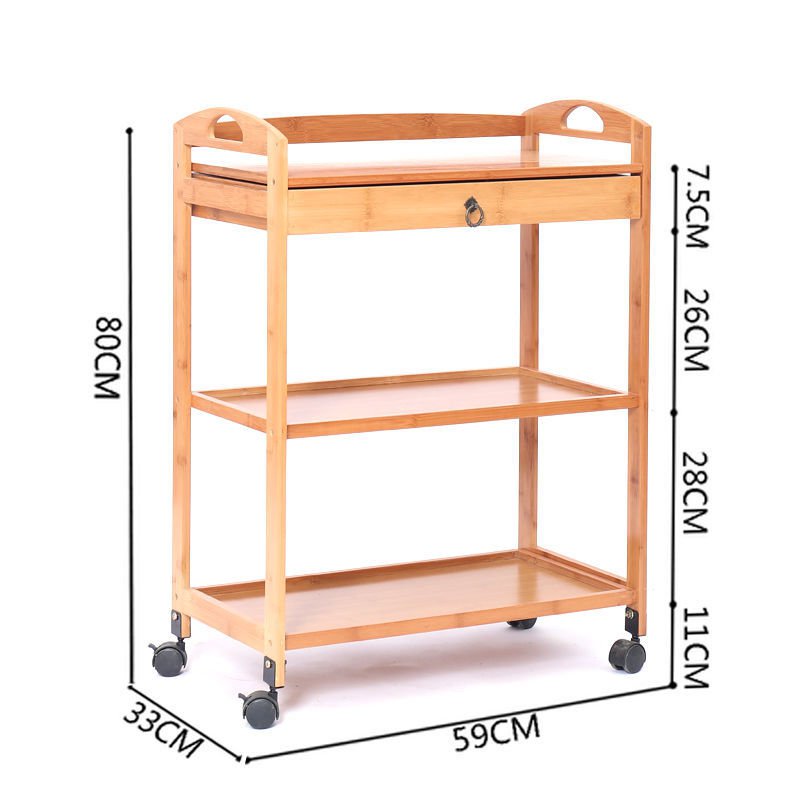 Dining Cart Multifunctional Bamboo Mobile Dining Cart Tea Cart Home Kitchen Shelves Three-tier Trolley Dining Side Rack