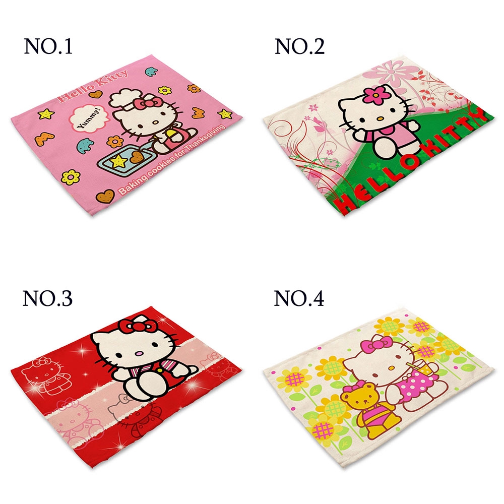 Dining Table Mat Table Placemats Coasters Hello Kitty Printing Cotton Linen Cute Cartoon 42x32cm
