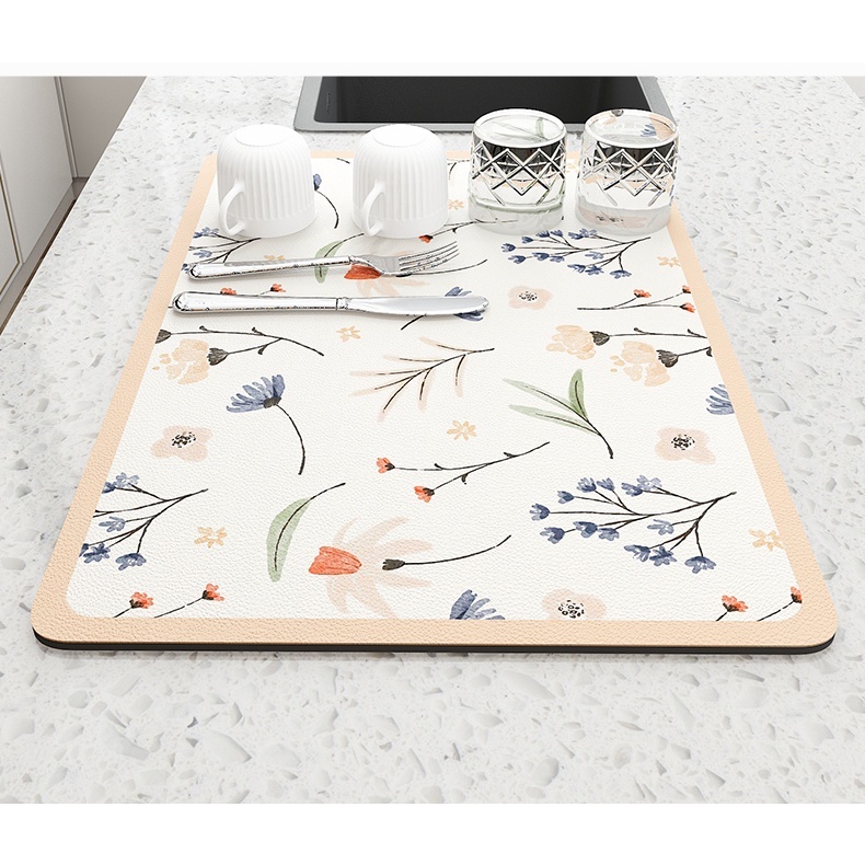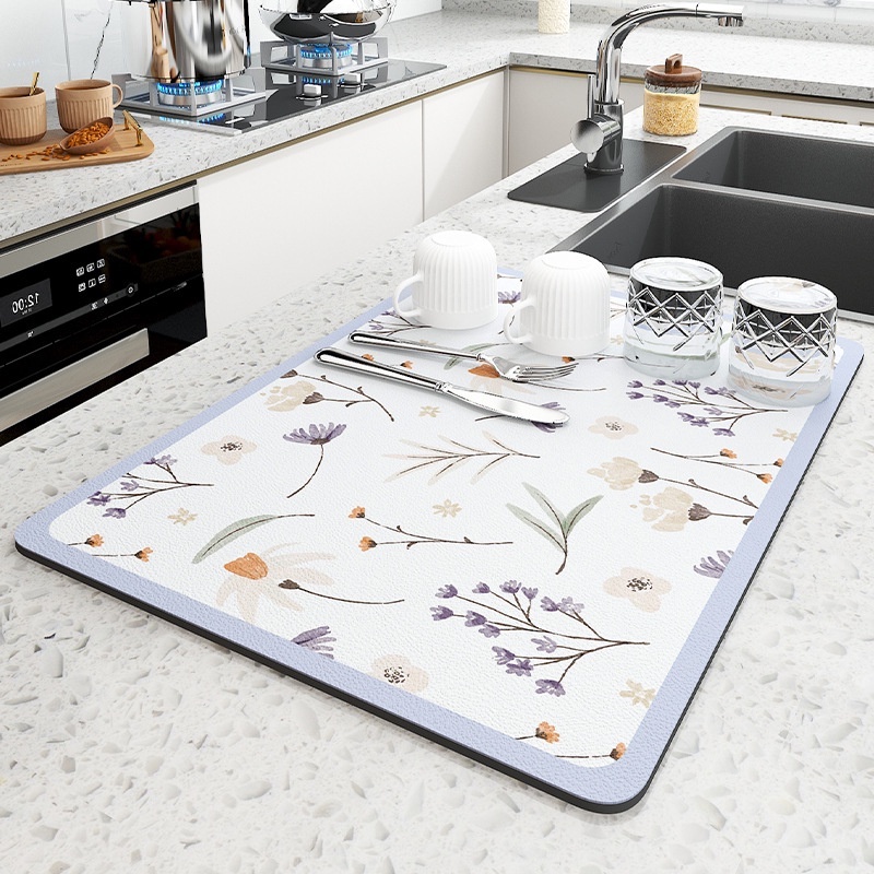 Dish Drying Mat Kitchen Countertop Faucet Draining Pad Ultra Absorbent Drainer Mat with Sink Splash Guard Tap Drying mat