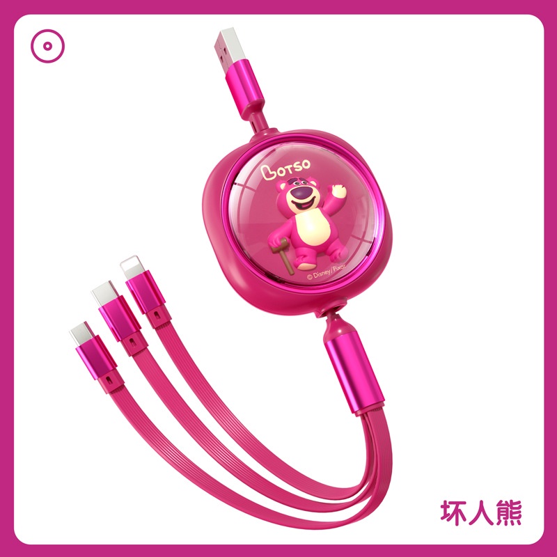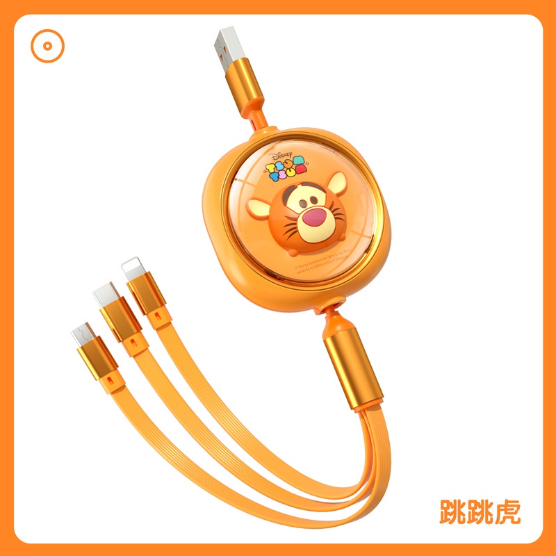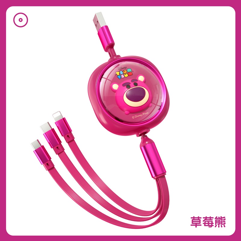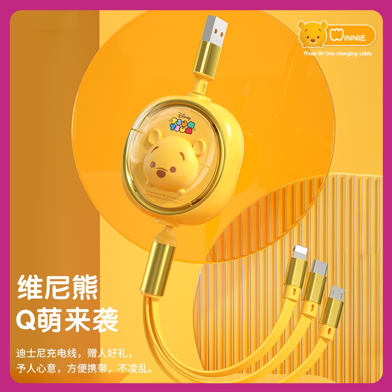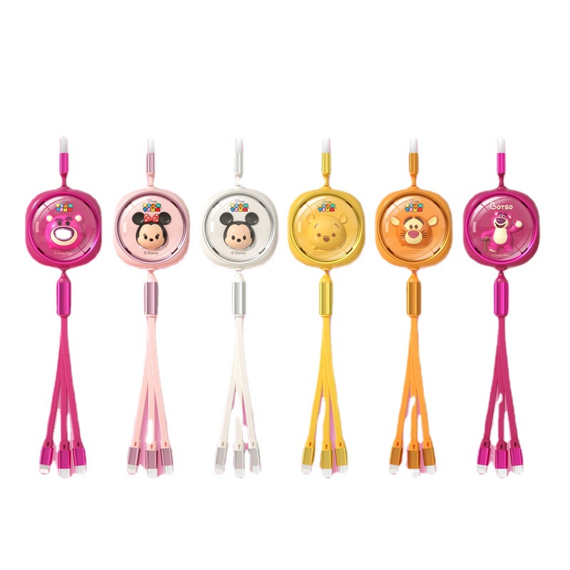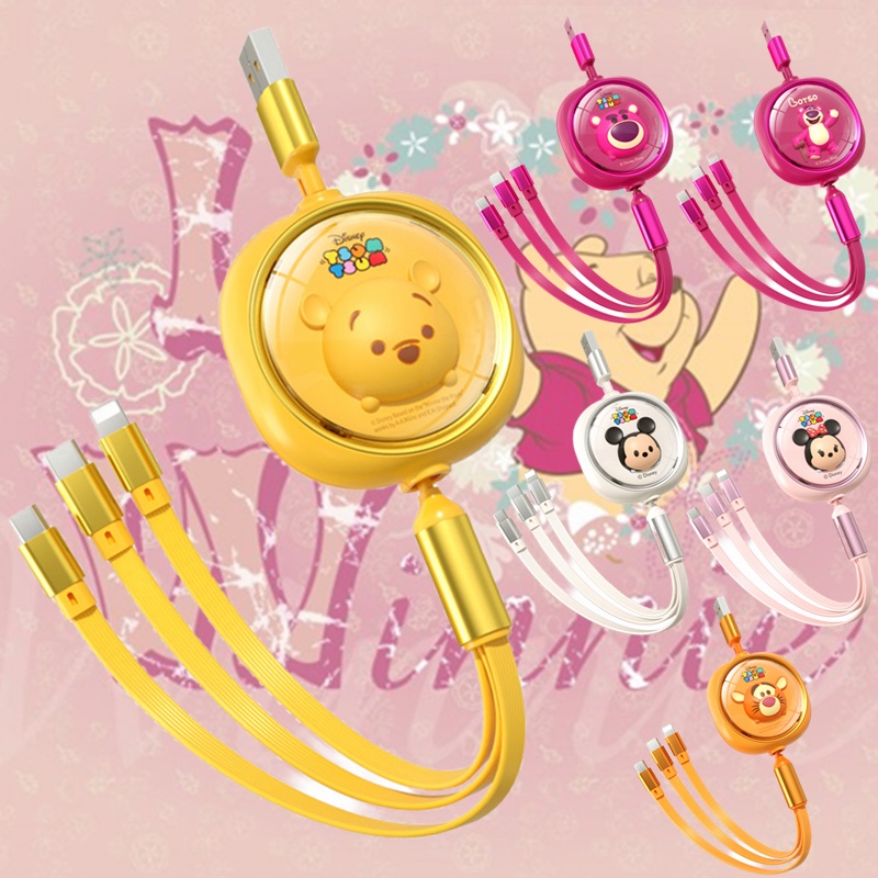 Disney 3 in 1 Car Data Cable Charger Fast Charging USB To Type C Micro USB Flash Charging Data Cable Lotso Mickey Minnie Mouse Winnie The Pooh