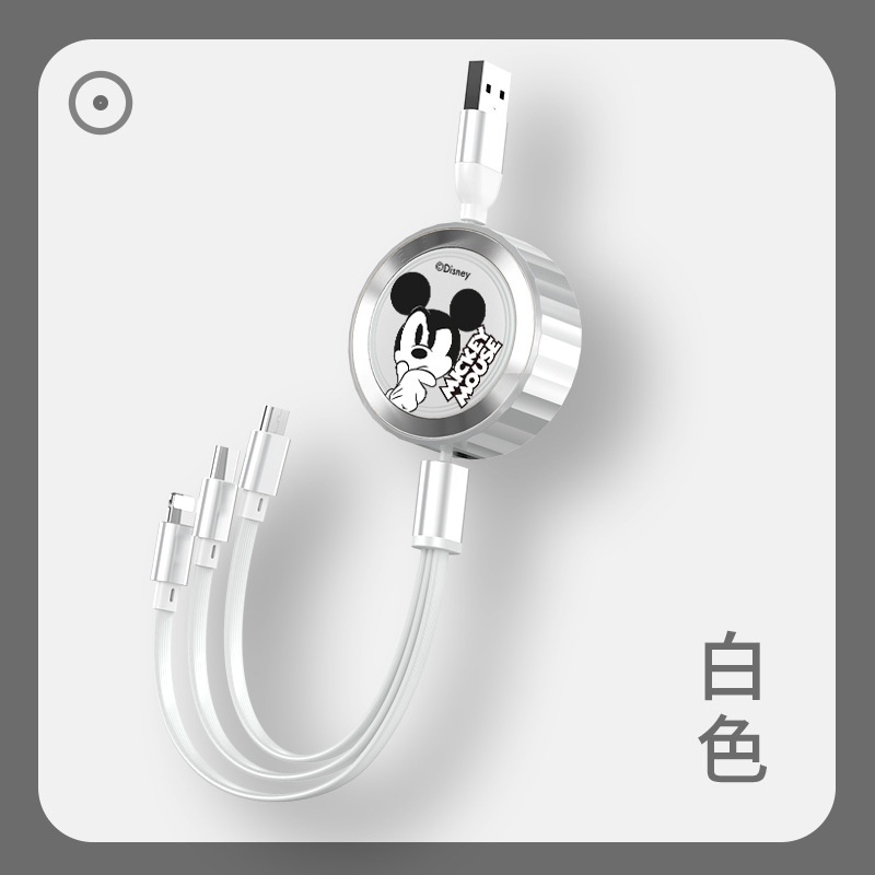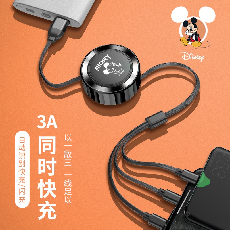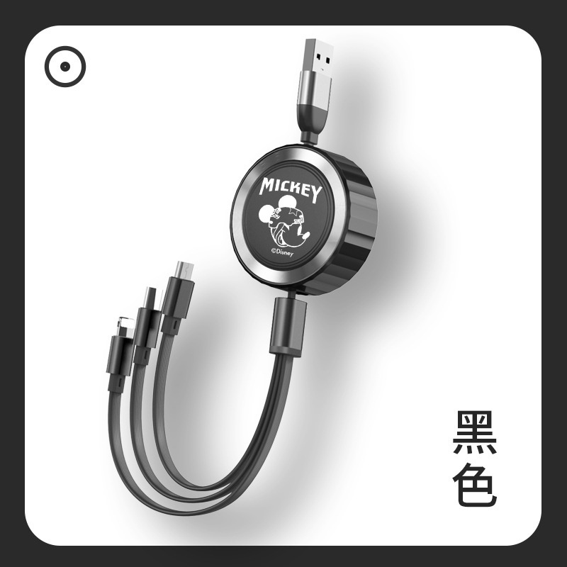 Disney 3 in 1 Car Data Cable Charger Fast Charging USB To Type C Micro USB Flash Charging Data Cable Mickey Mouse