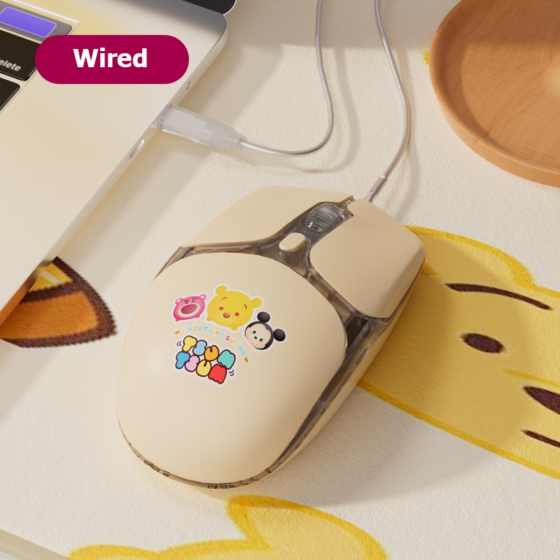 Disney M07 TsumTsum Series Wireless Mouse Dual Mode Bluetooth 5.2 Winnie The Pooh Strawberry Bear Mickey Computer Notebook Office Mouse Cute Silent Glow Cartoon Charging Mice