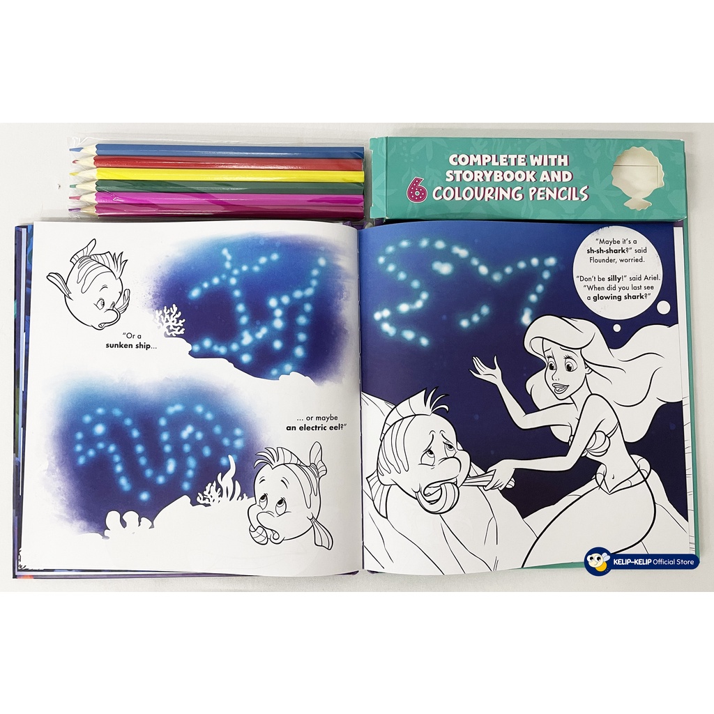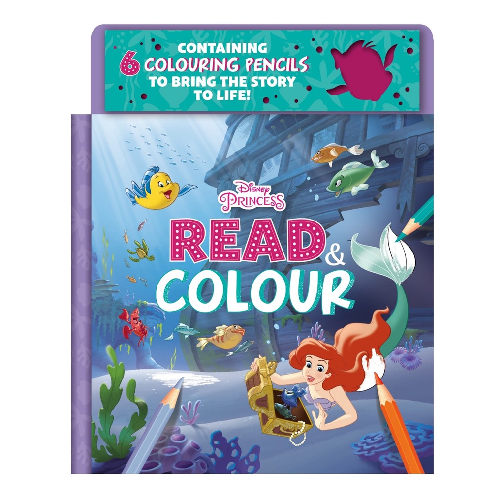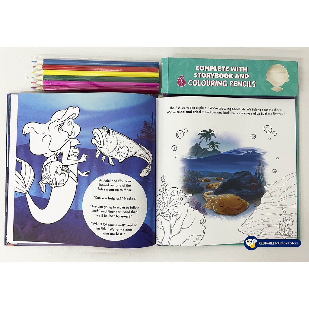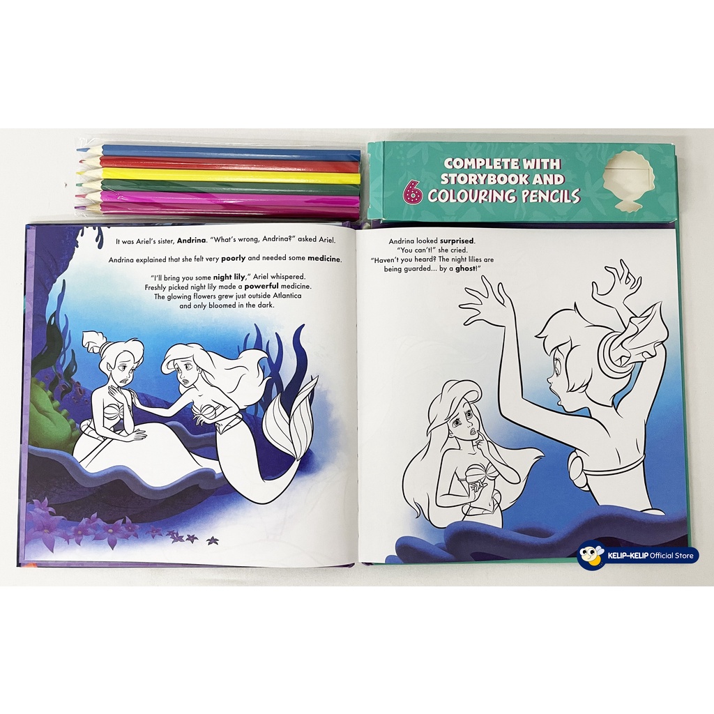 Disney Princess Ariel Read & Colour Book For Kids with 6 colouring pencils & Story Book