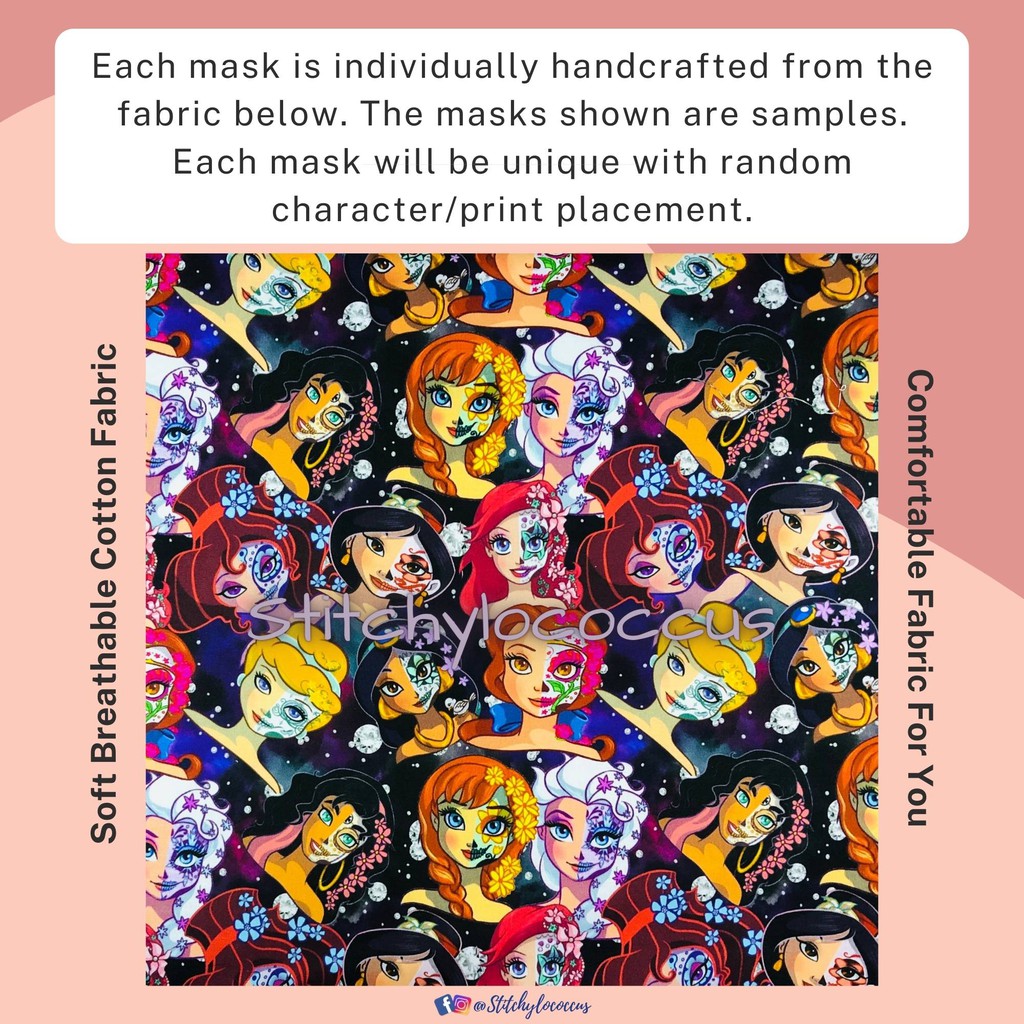 Disney Princess Reusable Face Mask: Halloween Aladdin Mermaid Frozen Cinderella Mulan Eerie Gothic Cartoon Child Adult
