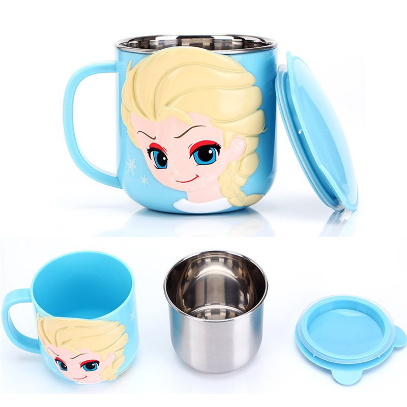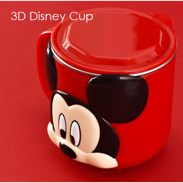 Disney Stainless Steel Cup with Lid 3D High-quality Cartoon Learning Drinking Mug Kids Babies Water Cups