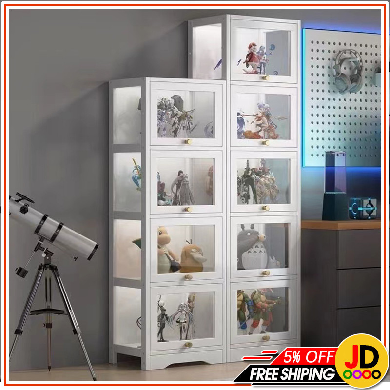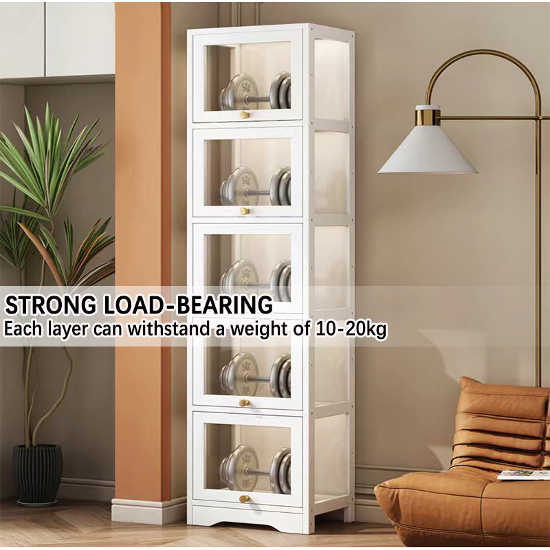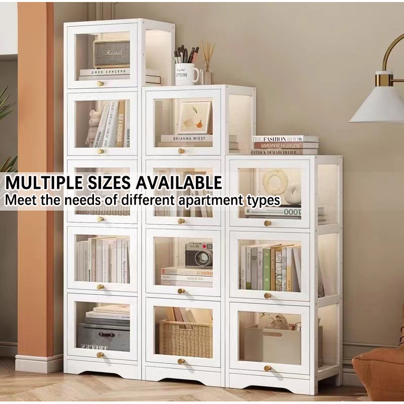 Display Cabinet White Bookshelf Cabinet with Flip Door Book Shelf Cabinet Slim Storage Cabinet Model Show Cabinet Display Shelf for LEGO / Toys