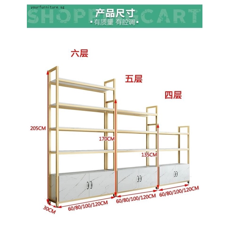 Display cabinet boutique showcase Nordic marble pattern bookshelf display rack golden multi-layer shelf rack cosmetic rack FClC