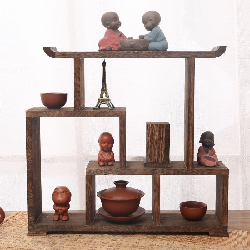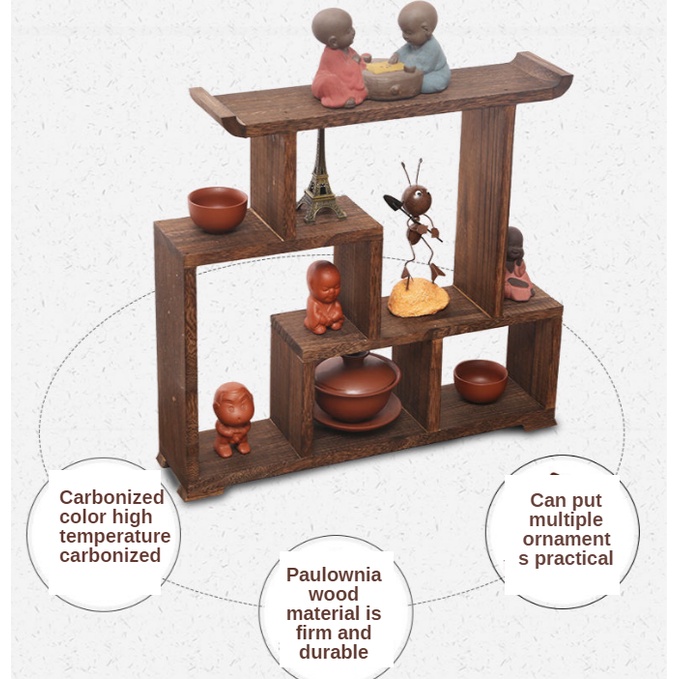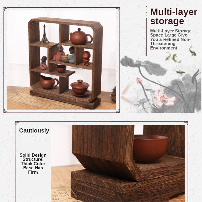 Display stand Antique Shelf Small Solid Wood Chinese Mini wooden rack Desktop Decoration Purple Clay Pot display rack Duobao Pavilion Tea Set Shelf