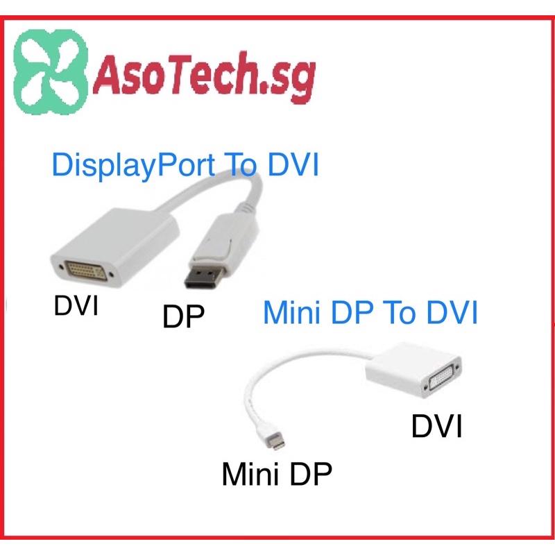 DisplayPort (DP) / Mini DisplaPort (Mini DP) To DVI Adapter with Short Cable 15cm