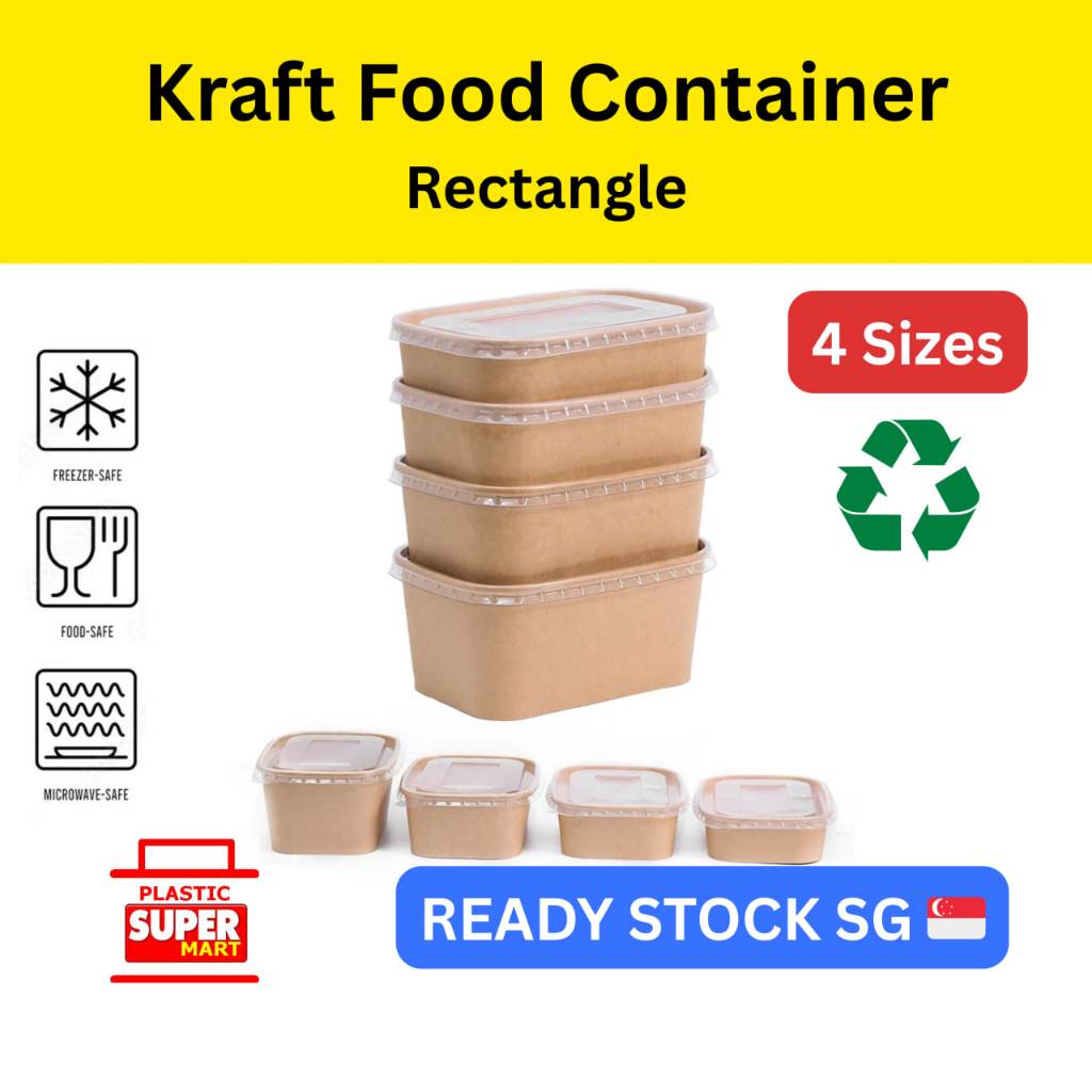 Kraft Paper Round Bowl【50PCS】PP PET Lid Takeaway Disposable Food Container Box Serving Plates Lunchbox Salad Singapore