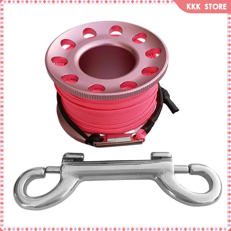 Diving Finger Spool Reel Line, 15M Aluminium Compact Snorkeling Dive Reel Spool Line With Stainless Steel Bolt Hook Clip