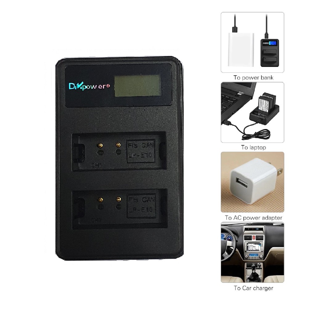 Divipower Dual Battery Charger For Canon LP-E10 Battery Can Charge 1 Or 2 Batteries Dual LCD Display Battery Charger