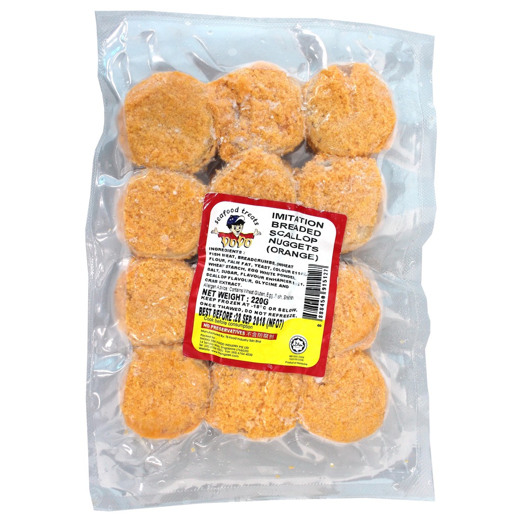 DoDo Imitation Breaded Scallop Nuggets (Orange) - Frozen 220G Halal