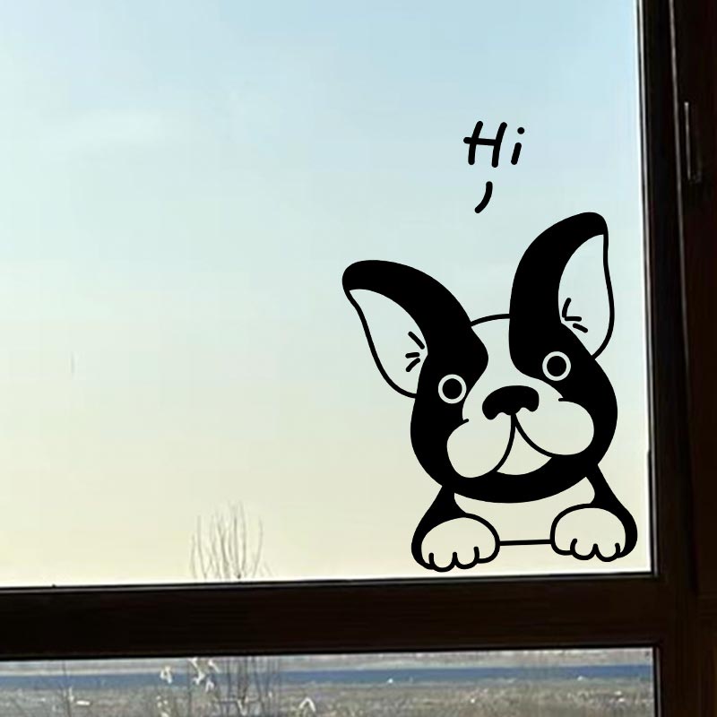 Dog Cute Hi Window Glass Door Sticker for Pet Shop Sliding Door Vinyl Decal for Cat Grooming Salon Animal Cartoon Mural