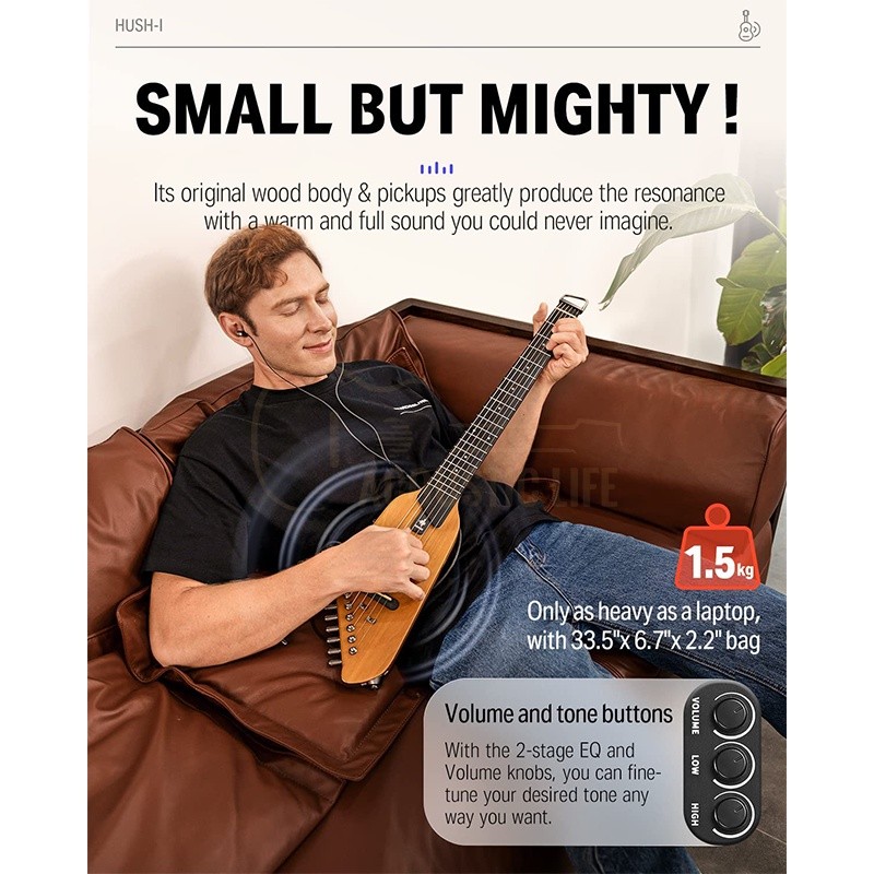 Donner Travel Guitar HUSH-I Headless Silent Guitar, Removable Frames Ultra Light Acoustic Electric Guitar with Gig Bag Hush I Silent Guitar HUSH I