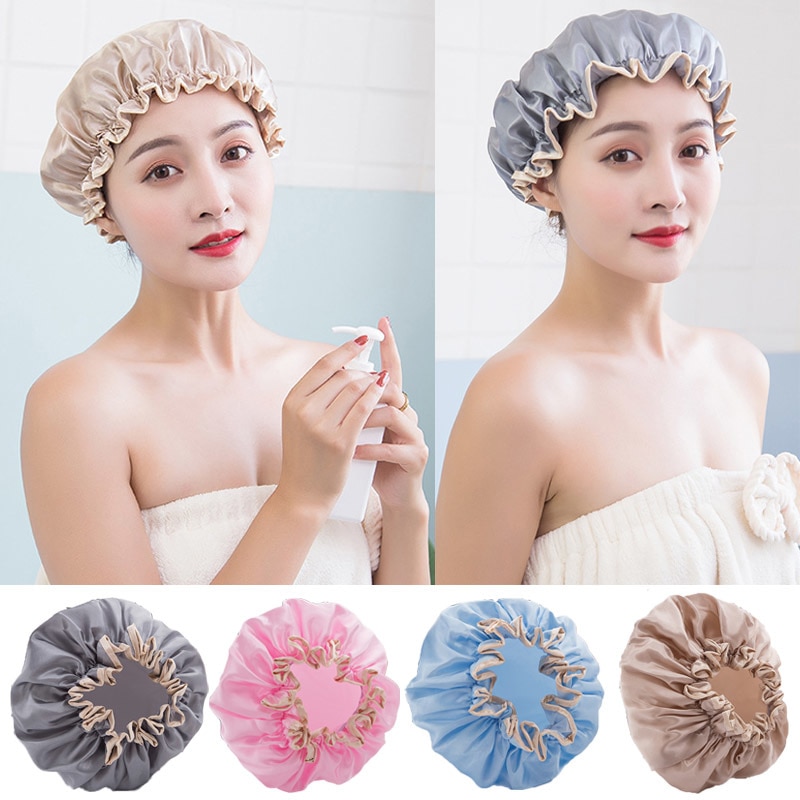 Double Layer Shower Cap,Reusable Bath Cap,Double Hair Waterproof Bath Cap