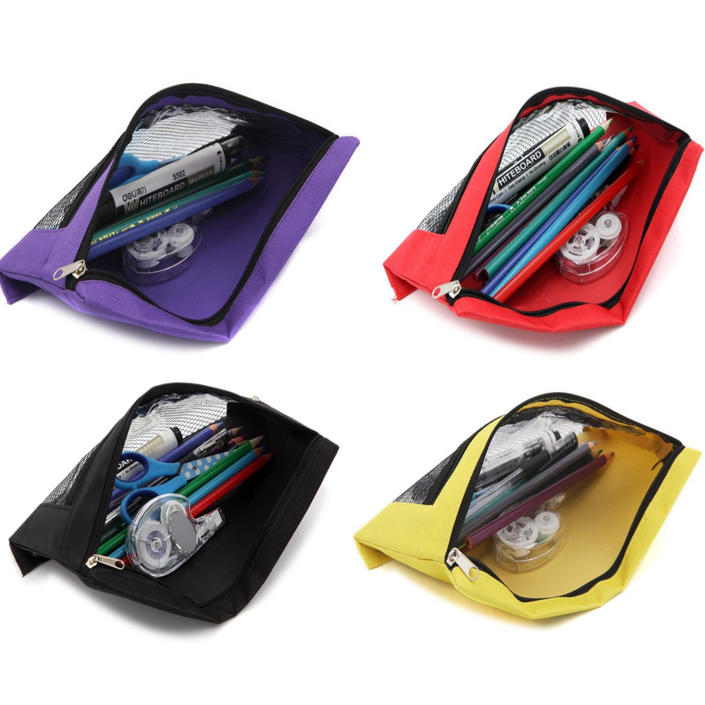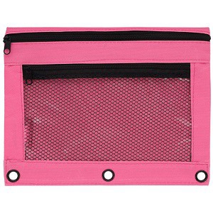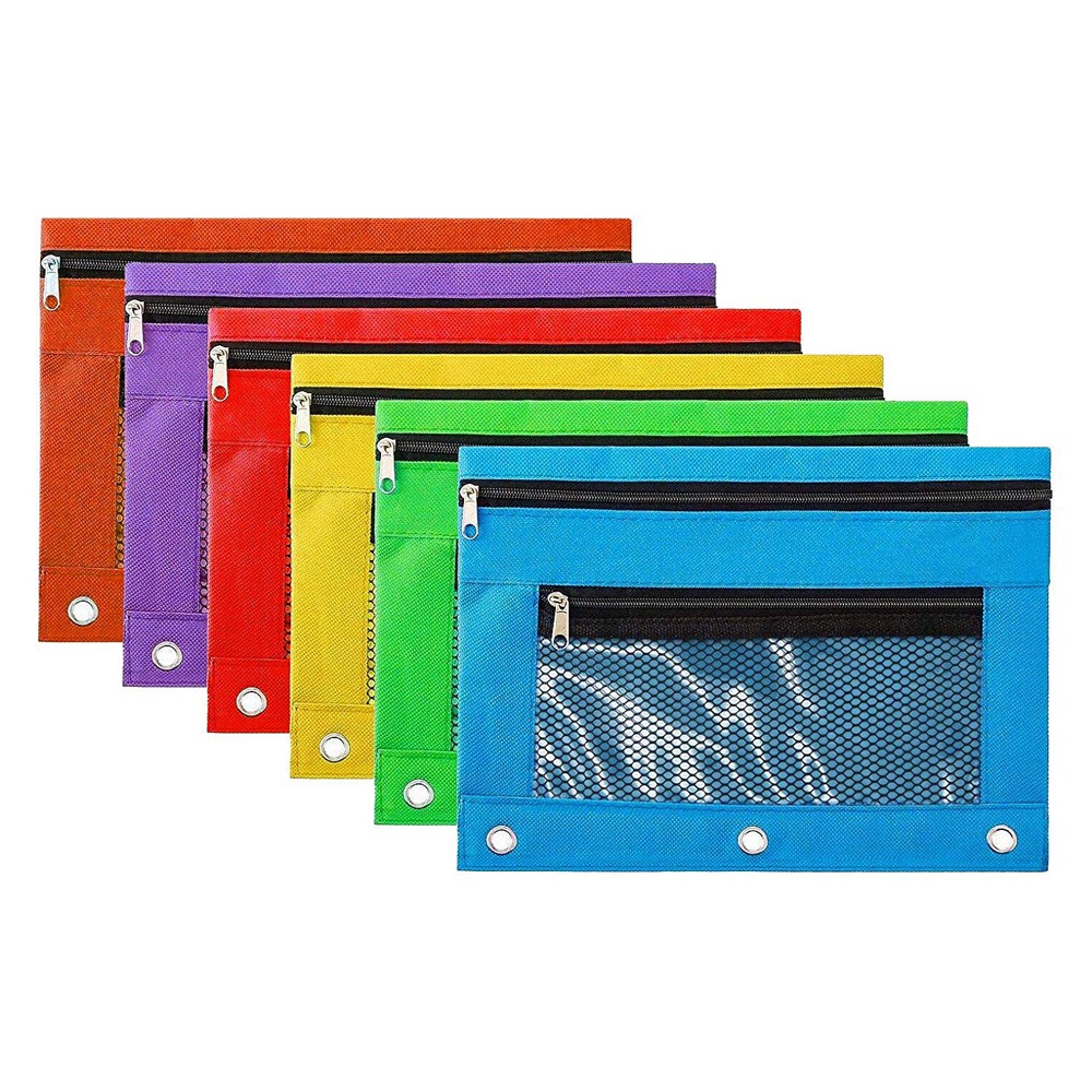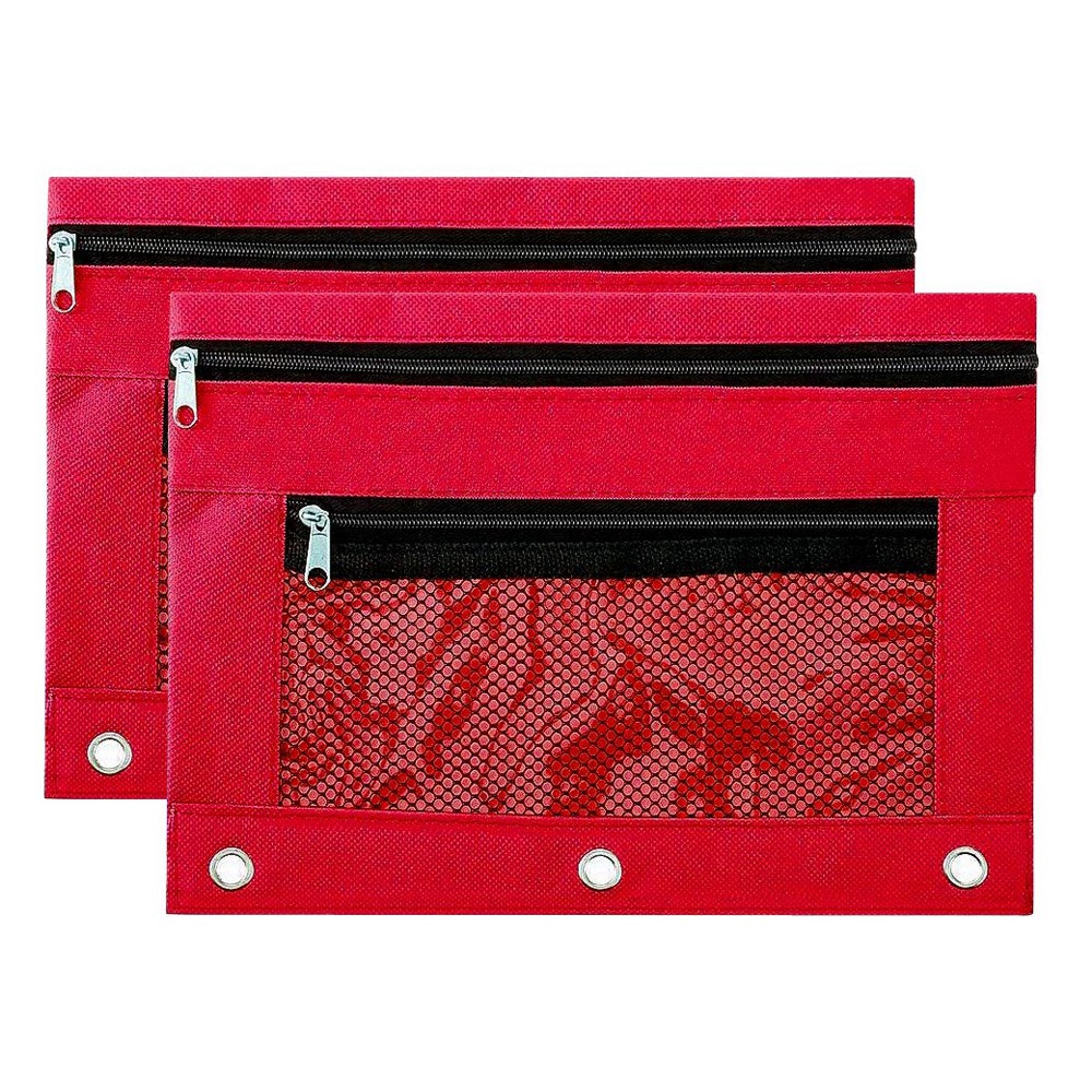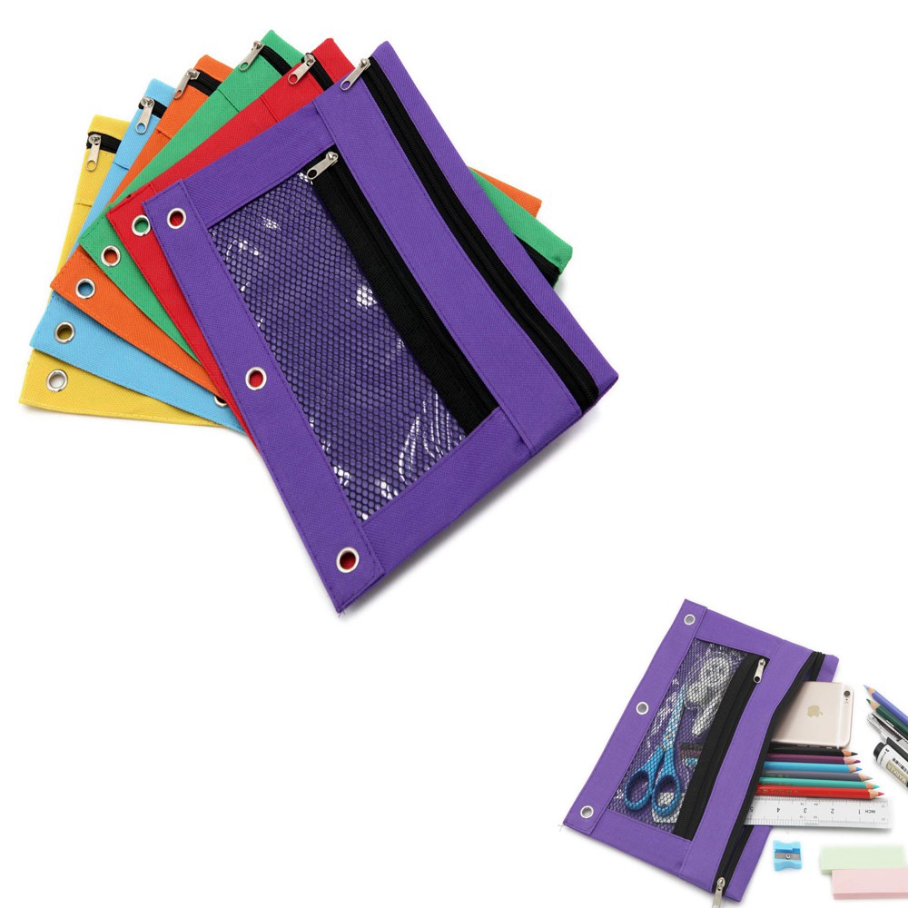 Double Pocket Zipper Pencil Pouch With Grommet 2 Compartments Assorted Holes&Quick View Mesh Pocket