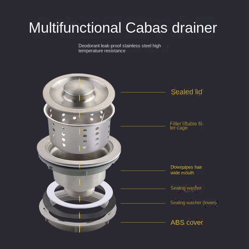 Double Vegetable Sink Drainage Device, Kitchen Sewer Pipe Fittings, 304 Stainless Steel Dishwashing Set, Drain Pipe,