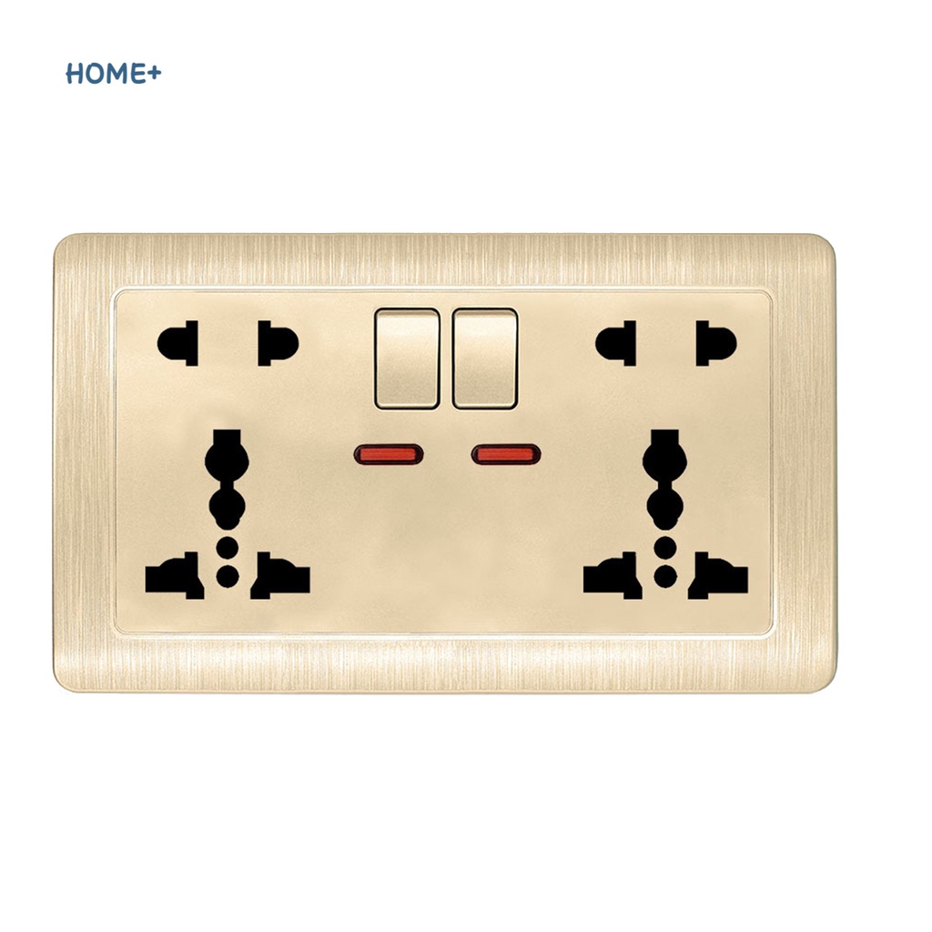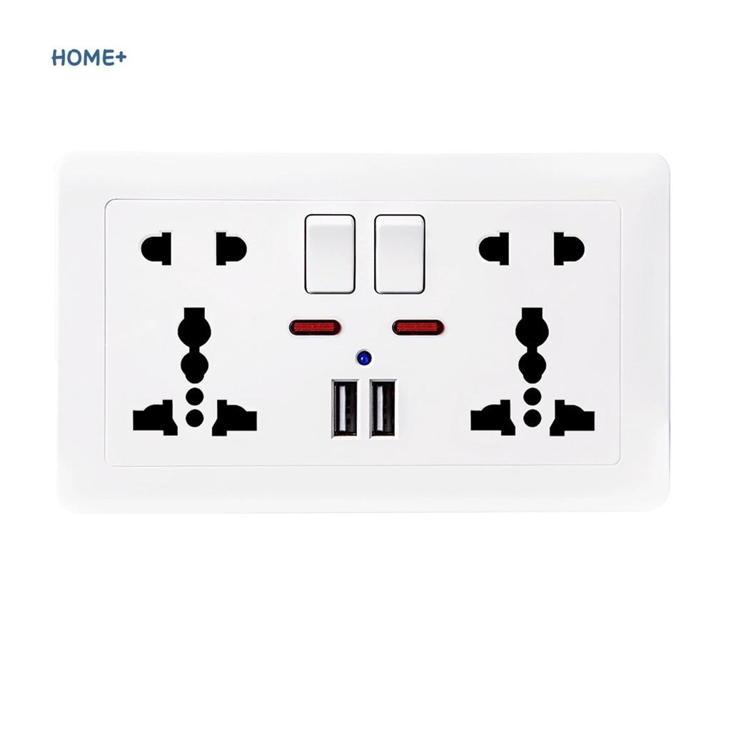 Double Wall Power Socket Universal 5 Hole 13A Dual USB Charger Port Socket with Switch