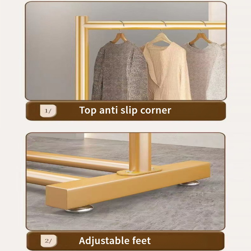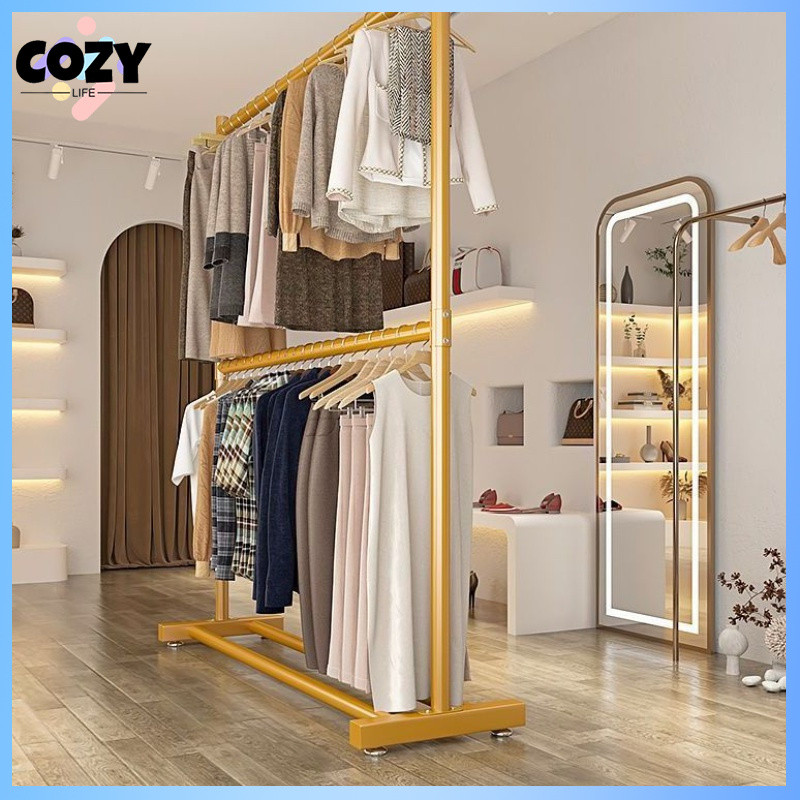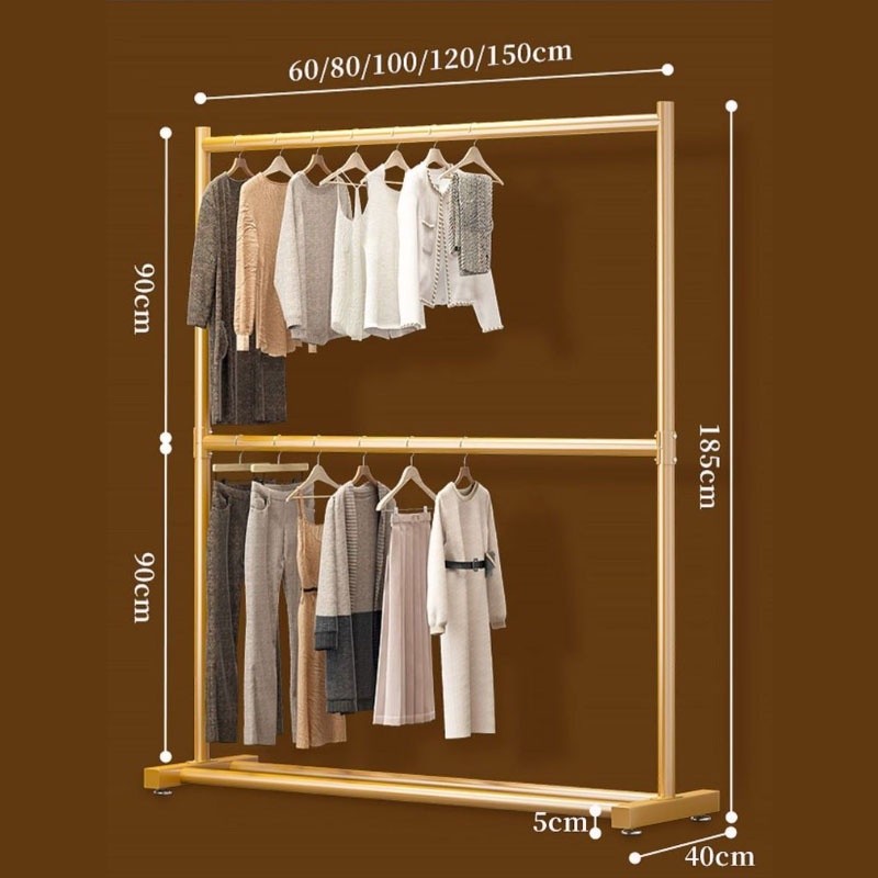 Double floor clothes rack household living room bedroom hanging clothes rack rental room storage drying clothes rack clothing store display rack