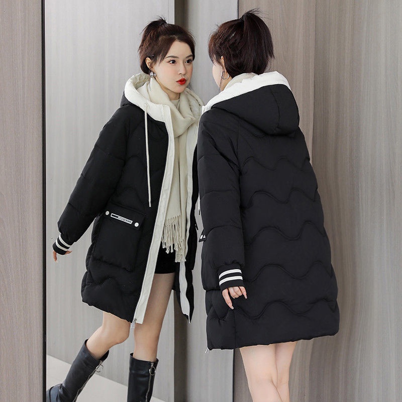 Down Padded Jacket Women's Mid-length Korean Version Loose Large Size Hooded Cotton Jacket Winter New Thickened Coat